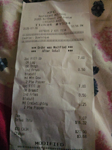Read moreThe young lady that took my order was beautiful. Her personality sets the bar high for others to follow. I came in the door and persued to the front counter and was greeted with a delightful smile. And the up most professionaliznm she is a asset to KFC organization. I didn't get the young ladies name put she works the evening shift and wears glasses she around 5'5 in height and she is Afro American. I placed my order which was chicken tenders with mash potatoes corn on the cob with bescuit . The time was around 4:45 in the late afternoon. I'll make sure I get her name next time I go back. Thanks KFC for having a great...
