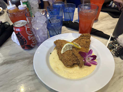 Read moreUPDATED REVIEW: On a recent trip to POW, the service, food, and time of food to table was very good so those ratings were elevated from three to four stars. Updated 3-11-25 POW is a place with potential to be great. It is the subtle things that overshadow the good. Upon entering you wait at the hostess desk, but the hostess was also the waitress. To her credit, once she appeared from the back and tended to other tables their food, she acknowledged we were there, and that she'd be there shortly. She asked if we had reservations, so in hearing we did not, our options were the four tables left in sight so squeezed together that you looked as if you were seated with others. That became uncomfortable when a couple of people began to engage on their cellphones. So make a reservation!!! You will be whisked into another unseen part of the restaurant. I ordered Fried Catfish with Fish. The grits, unknown to me had cheese in them. They were very cheesy and came across as too salty. The fish filets was seasoned well and fried just a bit too crispy. The atmosphere was nice and a steady stream of customers was apparent. With extra staffing and a better seating arrangement that is not so tight POW might stand out. First, you must get there but call to verify their address as it was incorrect on their IG page. Being lost by means of a quick fix, was strike one. Like I stated the...