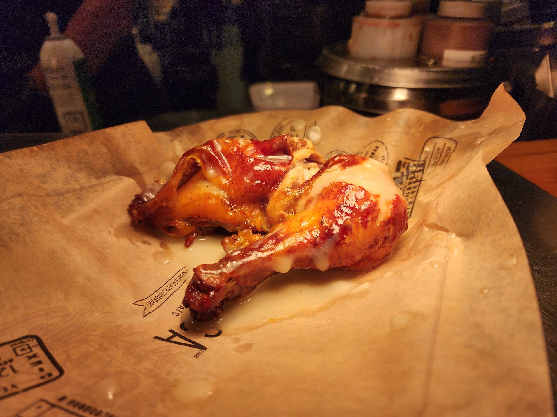 As our entrees, we had 2 orders of the quarter chicken and chose fresh salad with avocado slices and congri with avocado slices as our sides. Additionally, I had the churrasco steak with yuca fries and a fresh salad. At first bite, the chicken was juicy roasted to perfection. We were served a generous salad portions as well as a heap of the congri. The crisp bacon pieces in the congri gave it somewhat of a smokey taste. Totally unexpected but very delicious! The churrasco steak could stand alone— despite the required chimichurri sauce. It was well seasoned and very flavorful. The yuca fries were cooked nice and crispy, as requested.