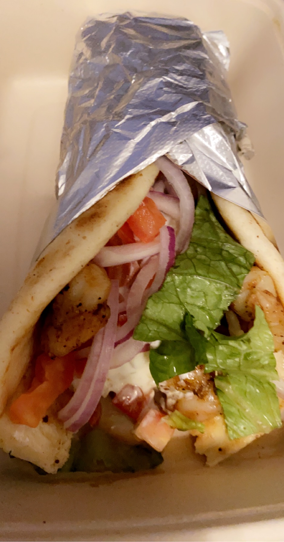 The guy who took my order asked the guy who was making it to hold the onions, apparently he forgot to tell him. So he grabs the meat and other things off the Pita, and picks off the onions, and puts the meat, lettuce, and tzaziki back on the Pita.