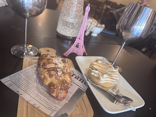 From the moment we walked in, the vibe was cozy and romantic—like a page torn from a Parisian daydream. We both ordered the Bonjour Madame, one of their signature dishes. It came with homemade French toast, a croissant filled with ham and gratin cheese, a perfectly cooked egg on top, bacon, and a side of Greek yogurt.