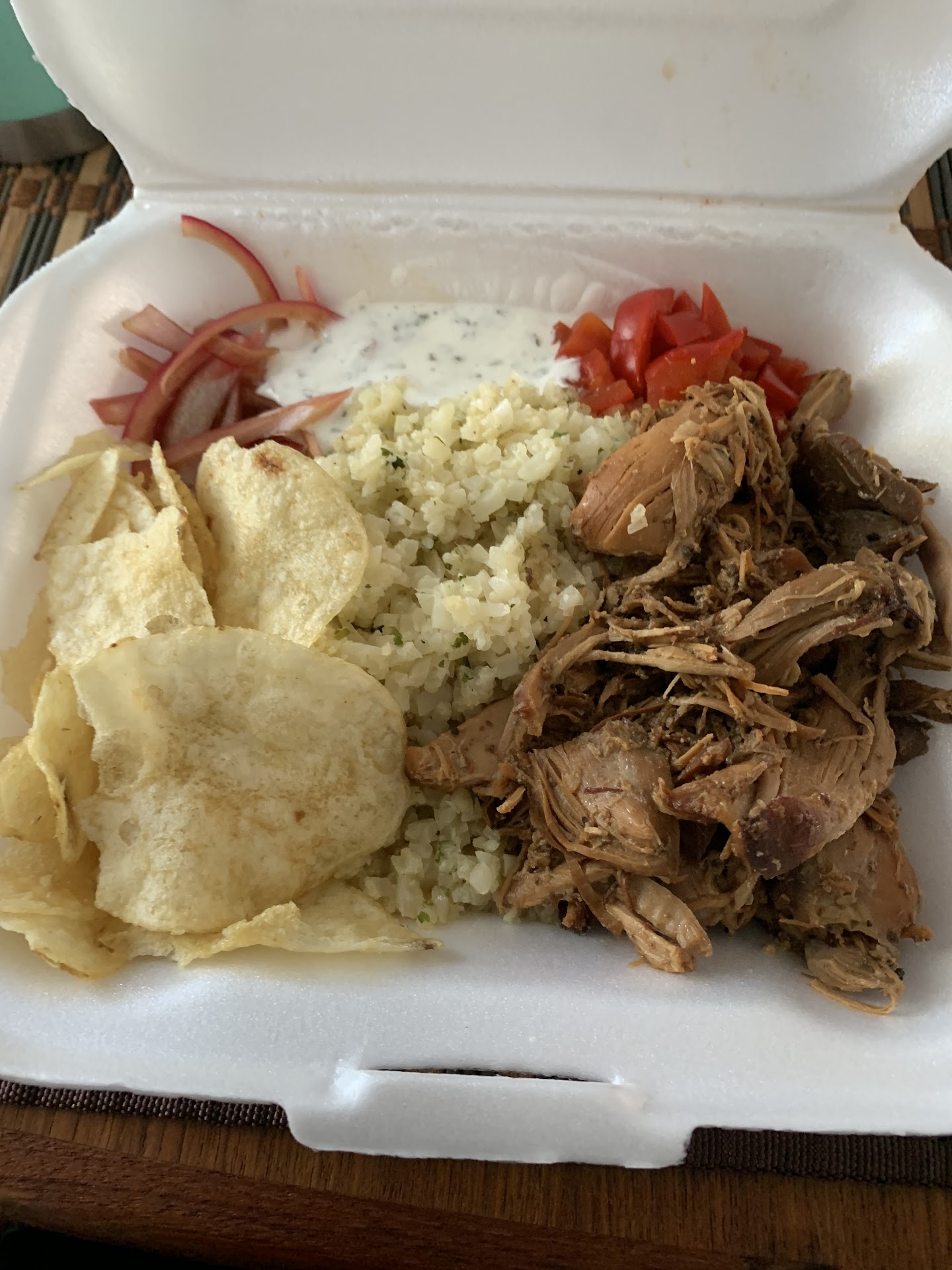 I would love to support this local spot (God knows the Shores needs some legit restaurants, not terrible ones), but the chicken cauli bowl was… absolutely disgusting. The chicken is most definitely not “fire-grilled.” No chicken thigh is this dark without it being braised or marinated… and with that said, it tasted like olives. I detest olives. It was horrendous. What’s with the potato chips?? Figured this was a side… and then the random lemon vinaigrette which made everything taste sour and completely imbalanced, esp the olive-flavored chicken. Was it even chicken?? I don’t even know. Just hoping I don’t get sick after this. I cringed with every bite…