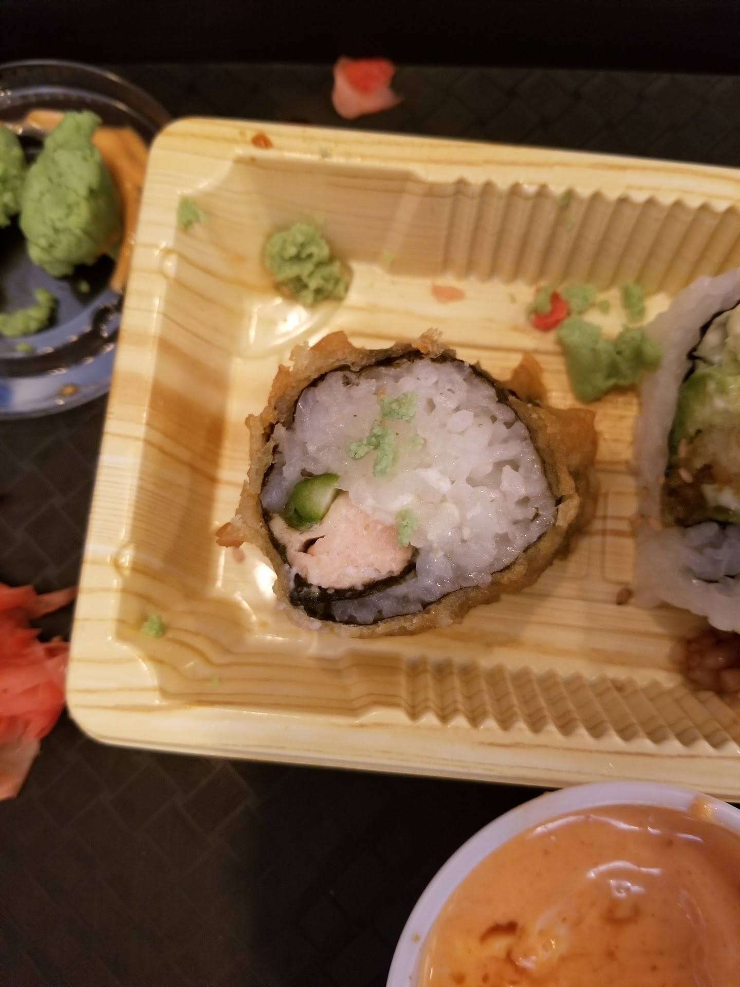 ย ย ย Read moreFirst and foremost the cashier had no clue how to handle more than one order at time. I placed my order and then my friend placed their order. We got the same rolls but different modifications. They mixed our orders up and when we asked for them to fix them the orders were still wrong. It took three times for them to get our orders straight. I also asked for spicy mayo after they messed up our orders three times and they still charged me $1 for it. The California roll was probably the worst thing I ever ate. Instead of a chuck on crab leg like shown on the menu, it was shredded crab with this unappetizing mayo in it. It has no flavor at all!! Next the salmon tempura is supposed to be salmon fried and then wrapped with avocado cucumber seaweed and rice. No cucumber and the whole thing was tempura. It was Not appetizing and there was so much rice and a tiny piece of salmon. Out of the 5 rolls only 3 had a piece of salmon in it. Ever since new management, it has gone down hill. Never...