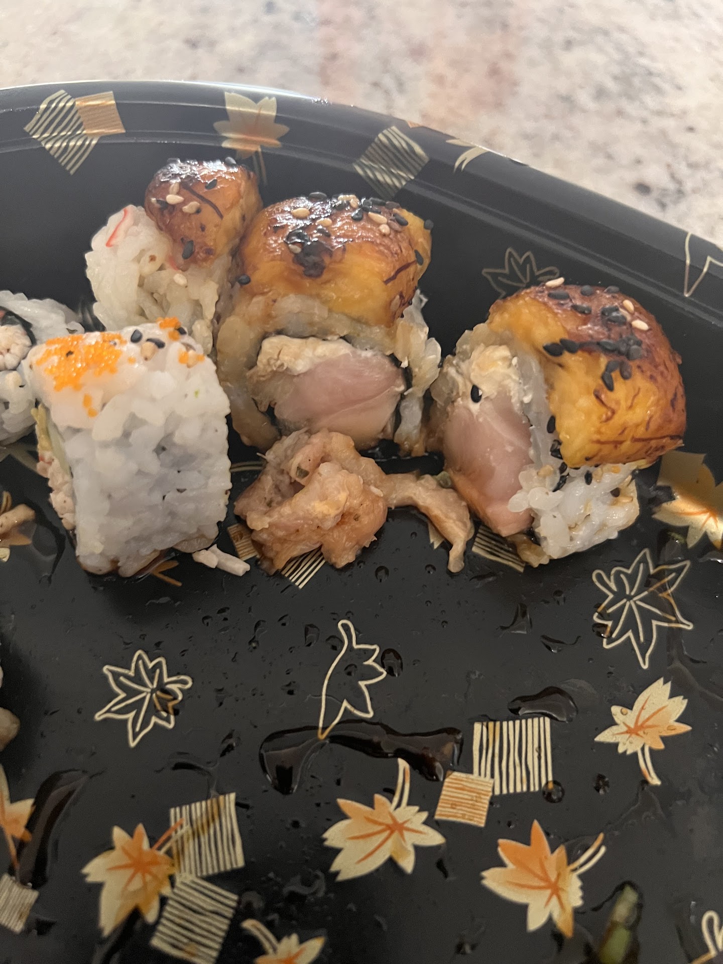 Read moreFirst and foremost the cashier had no clue how to handle more than one order at time. I placed my order and then my friend placed their order. We got the same rolls but different modifications. They mixed our orders up and when we asked for them to fix them the orders were still wrong. It took three times for them to get our orders straight. I also asked for spicy mayo after they messed up our orders three times and they still charged me $1 for it. The California roll was probably the worst thing I ever ate. Instead of a chuck on crab leg like shown on the menu, it was shredded crab with this unappetizing mayo in it. It has no flavor at all!! Next the salmon tempura is supposed to be salmon fried and then wrapped with avocado cucumber seaweed and rice. No cucumber and the whole thing was tempura. It was Not appetizing and there was so much rice and a tiny piece of salmon. Out of the 5 rolls only 3 had a piece of salmon in it. Ever since new management, it has gone down hill. Never...