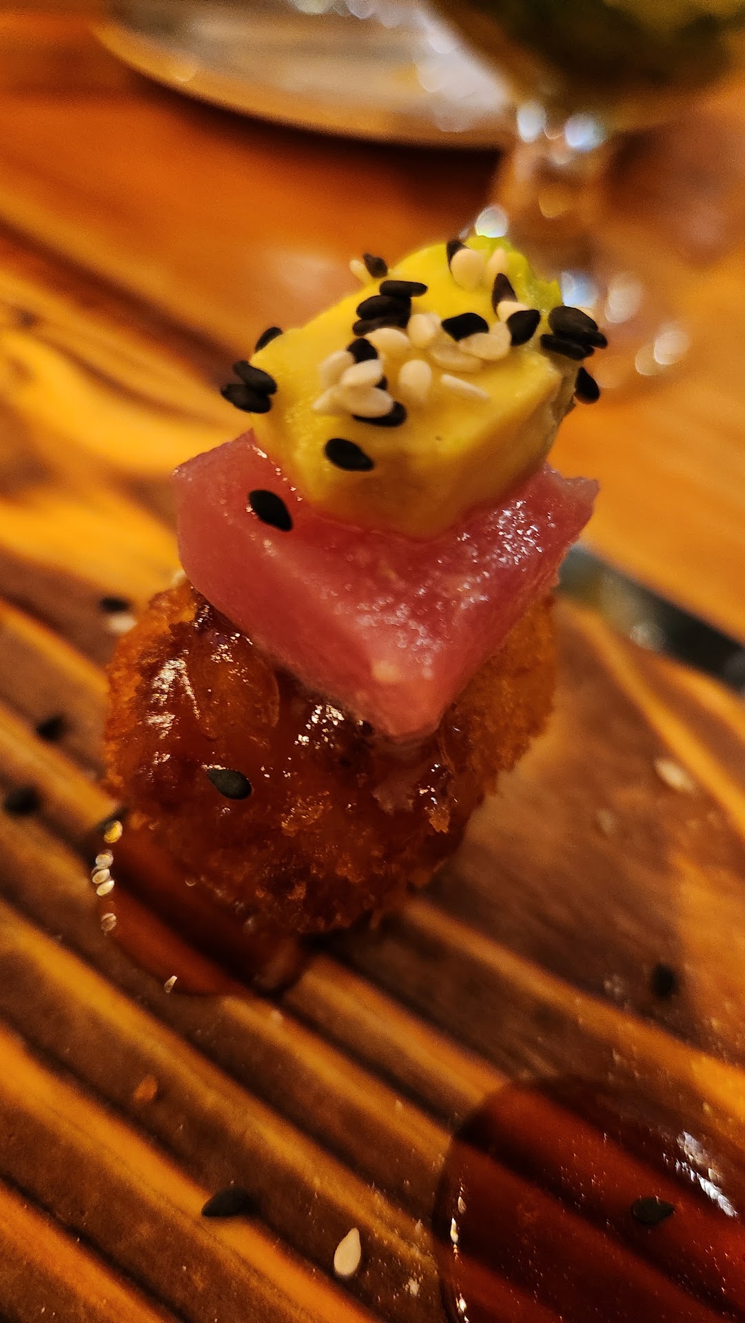 We began with the Causa Ganadora, a playful yet elegant take on a classic. The layered potato purée, creamy and cool, was topped with vibrant, fresh seafood that added a dynamic contrast of textures and temperatures. The presentation was modern, but the flavor stayed true to its traditional roots.