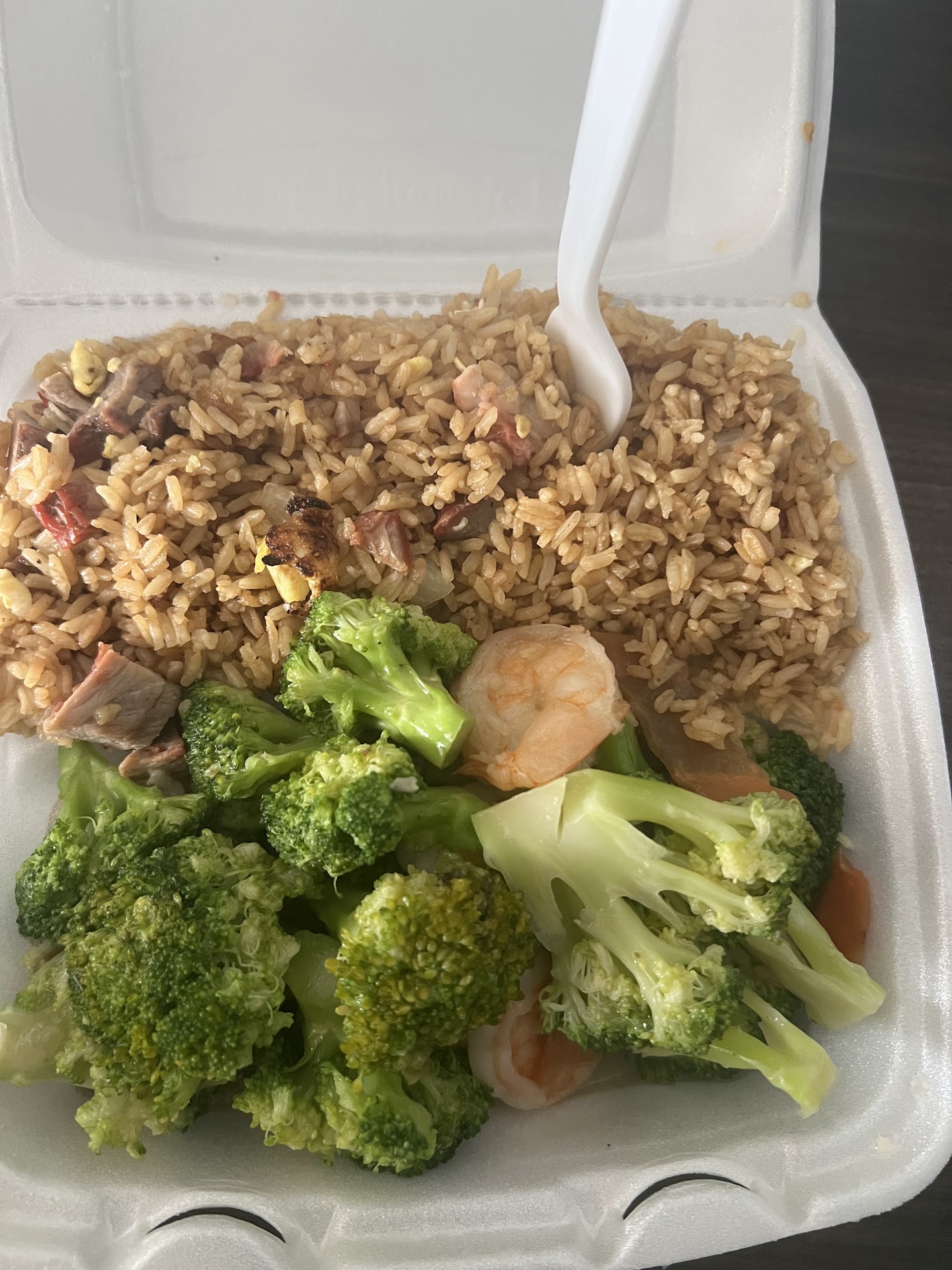 I have ordered from this place quite a few times. It's always the same situation. The shrimp with vegetables is very good..... Large,fresh shrimp,Although the portion of shrimp is a little stingy. I always get the orange chicken. The last few times that I ordered it the chicken is extremely overcooked. This time I ordered from ubereats. I suggest you do the same so there is some recourse when they mess up your food really bad. I put a note in the order that specifically said please do not overcook the chicken. I also called beforehand and asked if I could get fried rice with one of the entrees. I was told sure go ahead put it in the notes. They did not include the fried rice either. I usually get the combination dinners which are about $11 and some change a piece. I paid over $19 for each entree on Uber eats. This was because they did not include any of the affordable options. Other Chinese restaurants in the area such as honey bee and ping House Fry their chicken fresh to order.Their chicken is also thicker and more juicy. I would recommend that this restaurant start doing the same because they obviously are not getting enough business. The chicken tastes like it has been fried at least three times. It was so tough and chewy it was like chewing rubber or cardboard. They slice it so thin and they put very little breading on it so I don't know why they think it is acceptable to fry it so many times and also overcook it! It's also a shame because this is the only place that gives you lots of sauce and the sauce is really good but it's obvious that they cut the chicken too thin and they double or triple fry it instead of frying it fresh. And then on top of that their heat must be on too high and they must fry it for too long. Even the extra fortune cookies they sent me were stale. It also seems like the cook has a really bad attitude because anytime that I have said something about please don't overcook the food before I place my order the food is...
