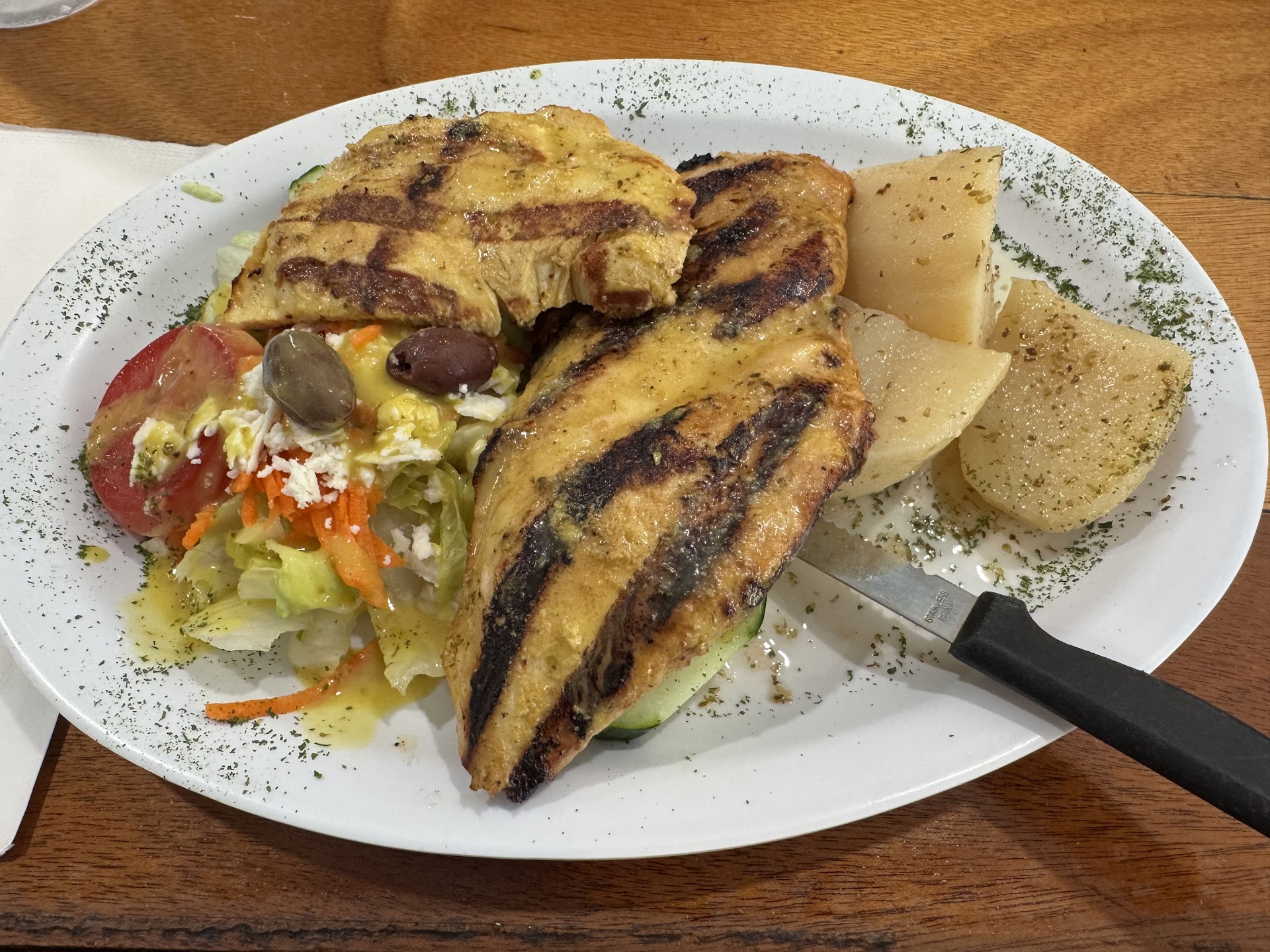 The menu was quite extensive, offering a variety of traditional Greek dishes such as gyros, souvlaki, moussaka, and spanakopita, as well as some fusion options like Greek-style burgers and wraps.