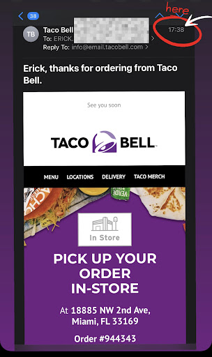Read moreThis place is SLOW even on a non busy day or they just pick and choose what orders to make. I can understand a full line ant the drive thru or lots of orders in door but come one Staff get your orders done! Either way if you order using the Mobile App expect to wait… wait… and wait. Even orders made while I was there via both Drive Thru or Kiosk/ desk got their orders before me. I made an online order which was confirmed at 4/28/24 at 5:38 PM by Taco Bell email and didn’t receive it until 6:17 PM at the store. That’s a total of 39 minutes. The staff doesn’t even attempt to talk to anyone even when you’re trying to get their attention. And if you finally get their attention their response is “we got it”. My advice, order 45 minutes to an Hour before showing up or just go to a different Taco Bell so you won’t have your time wasted...
