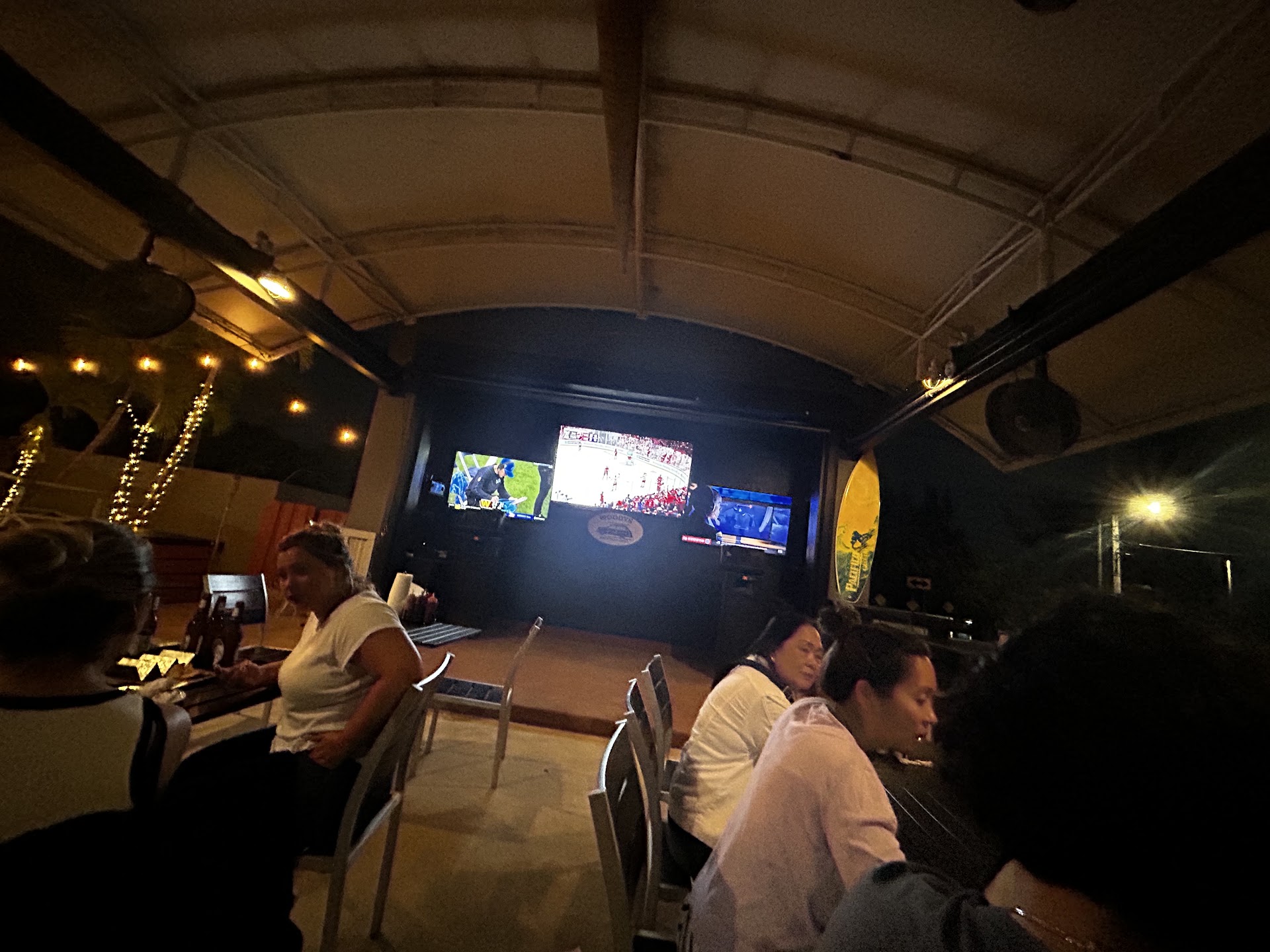 We were seated outside and requested menus (who even has to REQUEST menus??) and for the TV to be switched over to a specific playoff bball game. We were told to head outside and someone would be right there. It took over 10 minutes to have someone come out with menus and that was after multiple attempts at asking for service. The TV was never changed to the game we requested. We watched as multiple parties were serviced before us and as workers came out and walked right by us. The final straw was when we finally got menus (they only brought them out after we grabbed some from inside after 10-15 minutes of waiting) and they took another 10 minutes to bring out water. On top of that, the waitress was unfriendly. We left before we spent the whole night waiting for someone to take our order. All around a terrible experience and we will...