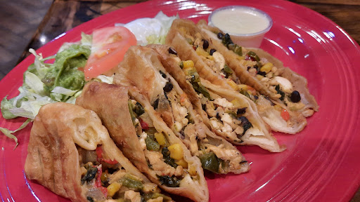 They have complimentary chips and salsa. I have been here multiple times and tried many different dishes. Today, I had the chicken chimichanga with a side of rice and pico de gallo. It was delicious. I have also had their nachos, which were lacking in the flavor department, and the same goes for the taco salad, in my opinion. But one dish I have had multiple times and by far my favorite dish here is the southwestern chimichangas. They are consistent with this dish and spot on flavor. My other favorites are the grilled chicken quesadilla and chicken fajitas. The four star rating is because of the consistency of these two dishes. While I have ordered both dishes multiple times, every once in a while, the meat will be a bit dry/overcooked but still edible. It's definitely not a reason to keep me away. Also, the service got a four star because some of the wait staff have trouble with their English, making it hard to understand them and to place your order from time to time. That said, I have only had one interaction where a server was rude and not attentive to their tables. (But I have had really good service from that same server before and since. So I will just chalk it up...