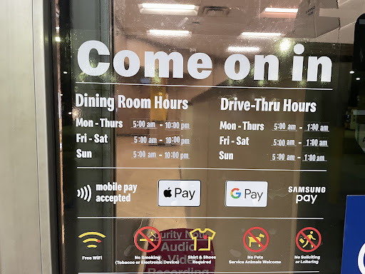 Read moreThey were very busy and obviously short staffed and the staff were not handling it well. They were refusing to take orders at the registers, so everyone, weather they liked it or not, had to order at their Kiosks... which makes it more complicated for plenty of people who have specific orders and are paying in cash (the Kiosk only takes cards). If you are someone, like me, who was using it for the first time.... then when finished with the order, yet another complication is added when it asks you for your table top number ( I had no idea what that meant or what I was supposed to do) and you then have to proceed to the counter and wait on someone behind the counter to find time to help, then go BACK to the Kiosk, enter the #, get your receipt, then go BACK to the register (if you're paying in cash) to pay for your order.... So they end up having to run the register any dang way! That was A LOT to explain, but that is my point.... it was way too overly complicated and not handled well at all. I couldn't count how many people I saw get exasperated and just leave. I also went to get salt after getting my food... and the station was a mess and out of half of everything, including salt. So, I had to go BACK to the counter to ask for it, meaning, I had to wait even LONGER just to get someone's attention because everyone was so busy that no one wanted to take a second to acknowledge I was there and ask what I needed. On the plus side though, our order was all correct, and the food was hot. I do understand though, that getting that busy is always overwhelming and chaotic, which is why I still gave 4 stars..... But hopefully reviews can be taken into consideration and learned from because mistakes are how we all have the chance to learn...