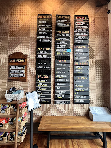 A tasty new place for BBQ in Loveland. Located in an old church and very attractive inside and out. We were pretty pleased with the food and would definitely come back and try some of their other dishes. The pulled pork and brisket were both delicious with lots of flavor and just the right level of moistness. The green beans were not the best I've ever had... Maybe needed a little more salty pork flavor. The white chicken chili was so-so ... Could have used more chicken and fewer beans... Would honestly rather eat my own. The cheddar grits were delicious and the star for me. Tried the red and white BBQ sauces .. Both were quite good on their own, but the real treat was combining them. Finally, the Mac and Cheese...I love a good Mac and Cheese... And this wasn't it. Has a sweetness to it that I just...