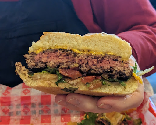 To eat, go in the front door to the hostess stand. You will be given a menu told to sit where you like and then to return to the stand to place your order. If you want drinks from the bar you need to mosey on over and lean over the seated guest to get your thirst quenched. Else, you can get water, and soda from a self-serve fountain. Then you will be asked to pay and tip...for what since you provided your own service at this point? At least your food will be brought to you, you don't have to go get it. 2 Stars.