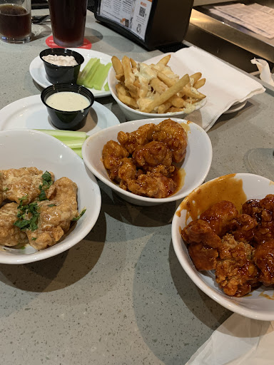 These folks know how to run a great atmosphere and restaurant to its fullest potential and we will be back again! My only hope is that Corporate Wings and Rings sees this, not only to congratulate those 3 wonderful employees, but also to KEEP THE SMOKED TRADITIONAL WINGS on their menu!! This is a trial item on test at this store, and I would put it up against Knock Back Knats in Downtown Cincinnati that charges $1 per wing. Not as big but so much more perfect when it comes to the snap, juiciness, and flavor of the wing! I chose the Medium Sweet Thai Chili flavor and even my wife that hates bones in her chicken ate a bite and said that she would order them! A++++++++ to the service...