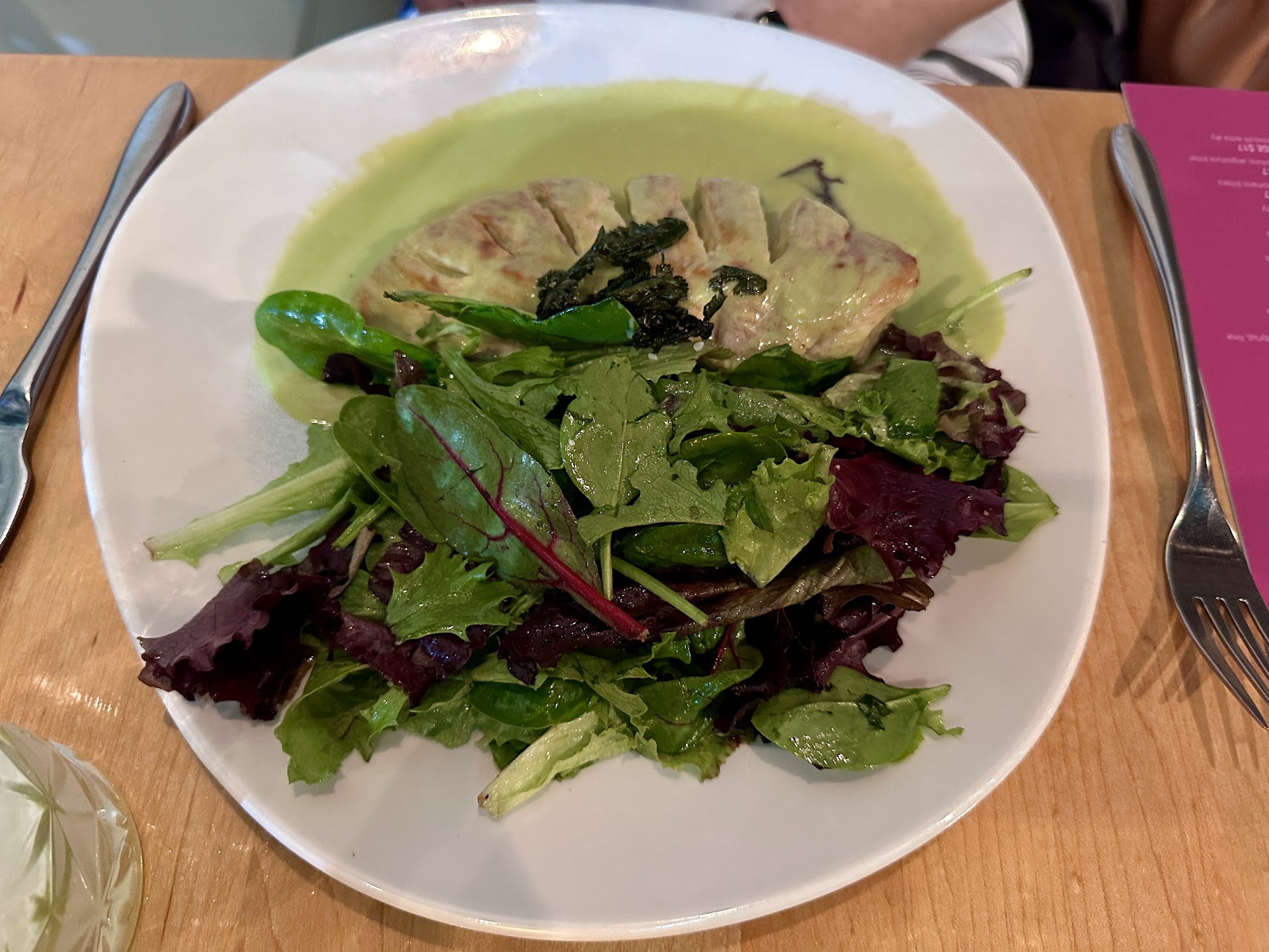 Upon arrival we were concerned because there was only one other table of two people seated! However, after around 6PM, this place filled up quickly! It seemed like a nice mix of local regular customers, and people like us who were just visiting and decided to stroll in. We were warmly greeted and made aware of Happy Hour, which we took advantage of to order an excellent margarita and a frosty La Rubia draft beer. The server also provided a small bowl of chips with salsa roja (spicy) and salsa verde (tomatillo) sauces, both of which were fresh and excellent! I even used them on my main course! My wife had the Poblano chicken, which although good, could've been cooked a bit longer to give it more of a sear. I had the Tuna carnitas, which were excellent, and fun! I had to make mine by combining tuna bits with fresh guacamole, onions, and cilantro on a tortilla. To be honest, although I enjoyed the tuna, I wish it were in slightly larger pieces or chunks. I'm also used to a smoky flavor from bacon and red sauce or maybe some refried beans with carnitas, but that's just a personal preference. It was a very fresh taste, so I can't complain about it too much! The inside of the restaurant is very bright with a lot of art. Overall, it had nice ambiance with mellow music and a great vibe. We'll be back on our next...