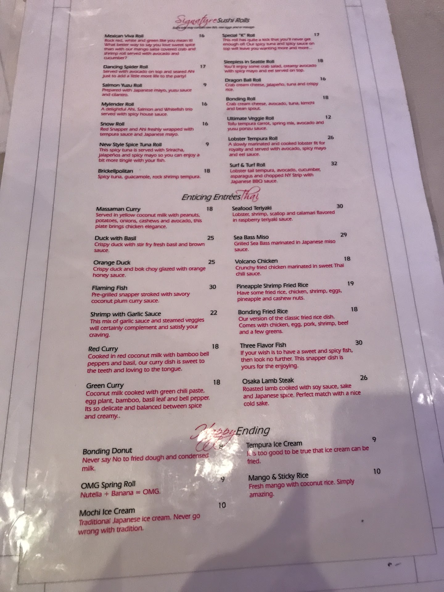 Ā Ā Ā Read moreBonding is your Thai place of Brickell. If you want takeout it might be a good idea to order here since itās a small place. It can get cramped at times especially in the middle of the restaurant so I would order takeout or sit not in the middle of the restaurants.