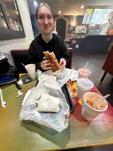 The girl that was there was very nice and friendly. She was the only person working. Two more people walked in to work as she finished up my order. I ordered at 545 and did not get 4 burritos and 3 tacos until 650pm. And there was only one person ahead of me with a single item order. It's unacceptable to have only one person working during the dinner "rush-hours" if you want to stay in business. They ran out of to go boxes, they ran out of beans. The beans they did have and put in the burritos and meals were dried up and gross looking. They had no pork for carnitas.