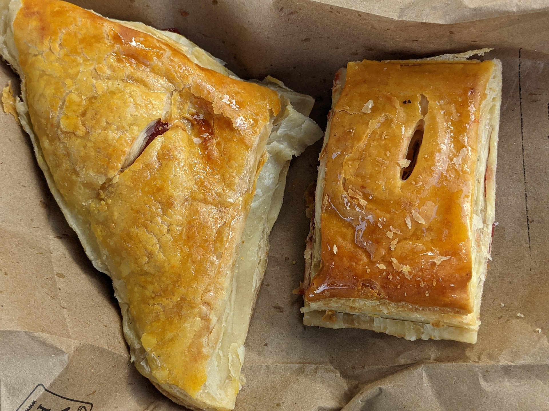 Let me tell you: this pastry is out of this world. It feels like it weighs nothing. The dough is so well laminated and flaky, even more so I would say than a typical croissant. And it has the perfect amount of guava paste and cream cheese. It's deceptively light, and yet it will definitely power you through the morning. Once, I got it and it was still WARM like it was fresh out of the oven. I died a little with every bite.