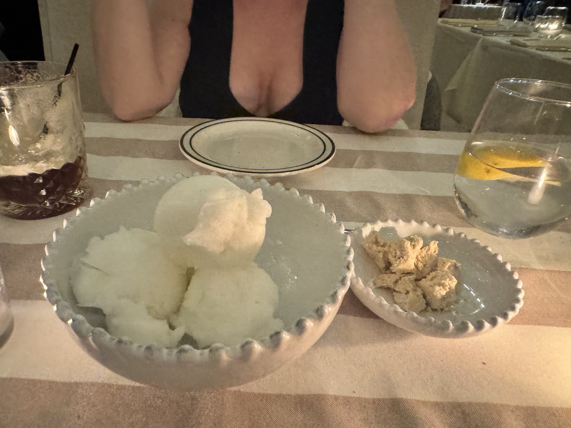 Once we got our drinks there were issues immediately. We got a Coke that had clearly been sitting out waiting to be brought over because it was warm and the ice was melted. We also ordered three different cocktails; a French 75, one Prosecco cocktail, and vodka cocktail. The French 75 was not a French 75, the color was incorrect and it had no Prosecco, and they gave us two vodka cocktails instead of one vodka and one Prosecco. The cocktails tasted and looked exactly the same which is how we knew they were the same.