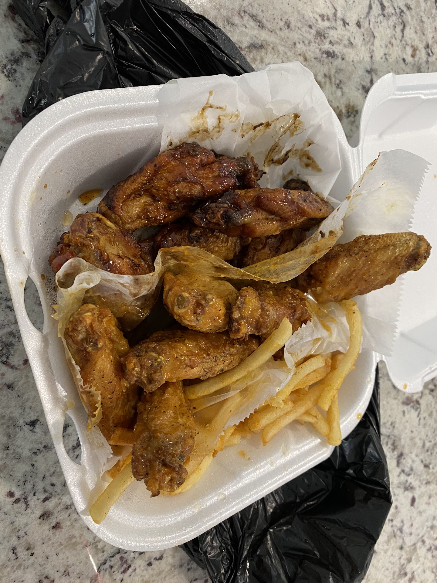 Ā Ā Ā Read moreOkay so I read all the reviews. I wanted to try it out! Itās a small restaurant, sitting on the corner. Staff is exceptional! Customer service over everything! So I gave them a 5 star because one they accommodated me with the wings. I asked for all flats and crispy they werenāt so he let me try it, to see if it was to my liking. I need crispy wings or Iāll choke! Lol but he took them back and I got what I ordered. He suggested a few flavors to try, since I told him Iāve never been there! Heās was very nice to explain whatās poplar and what he likes. I will share a few pictures of mine and my familyās order. The wings arenāt small they are medium size. I order the yellow rice and and a cake. The cake didnāt give me excitement. It was a bit dry. The owner seem cool, but looks mean. The restaurant is busy. I will share my photos. Judge...