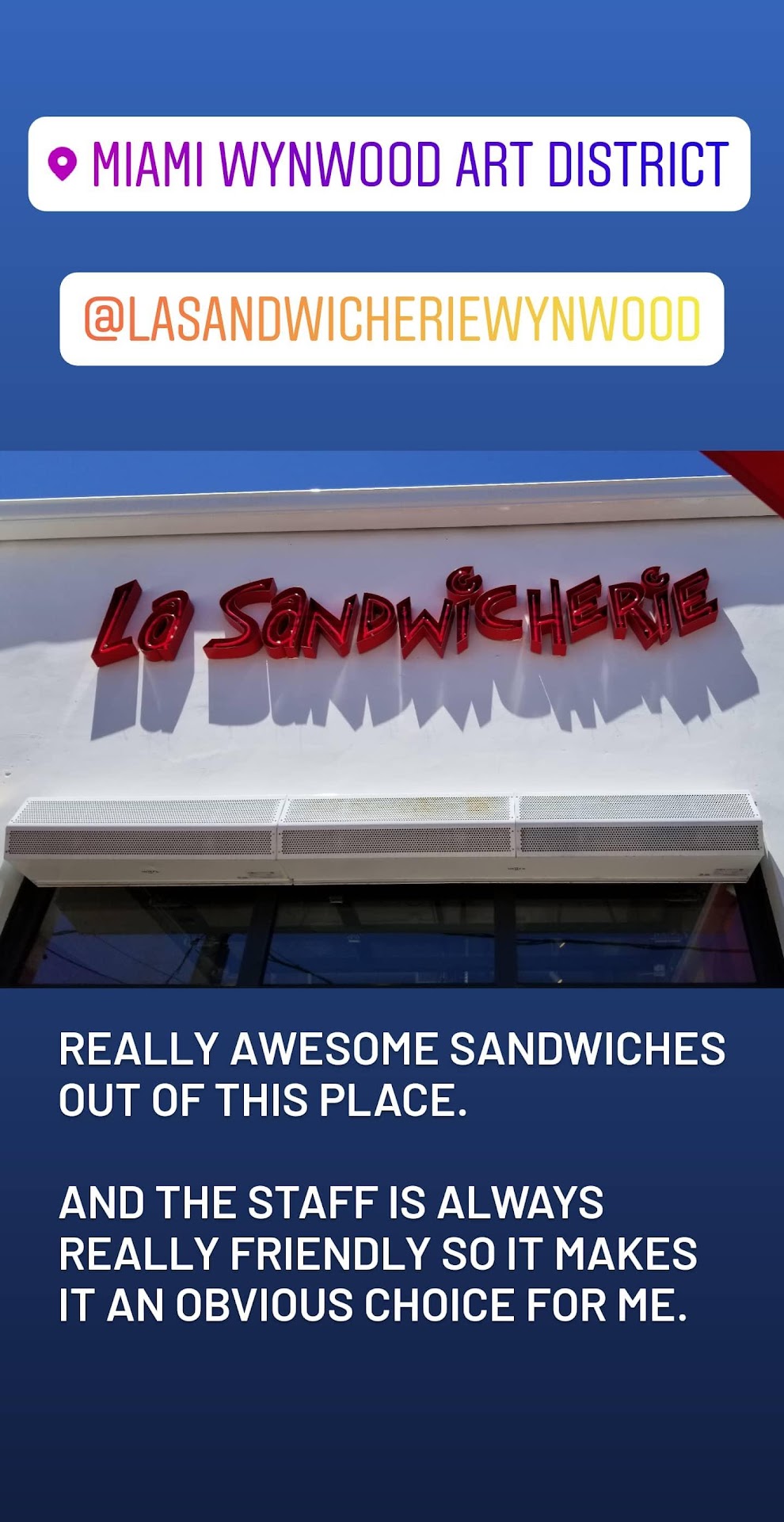 Read moreOn the 17th of December, I visited the new Sandwicherie in Wynwood— in where my experience was horrible. The person that was attending me did not ask me whether i would like my sandwich toasted or not, when i told him i wanted it toasted, he put the entire sandwich in the oven— with the tomatoes and lettuce— all wrapped. When I told him that I did not want the tomatoes, lettuce and the other vegetables because they were put in the oven, he began to then get aggressive. I honestly hope that the owner looks at the cameras. I am a customer of Le Sandwicherie in both Brickell and Miami Beach and they are completely different regarding the personnel, in this case, the one at wynwood, which i will never visit again. I wanted to note that this occurred in the night shift. It is important to note that, if the owner reads this message, to check the cameras of the restaurant, and if they have audio, then to listen to the conversation, please. Again, this occurred on the 17th of...