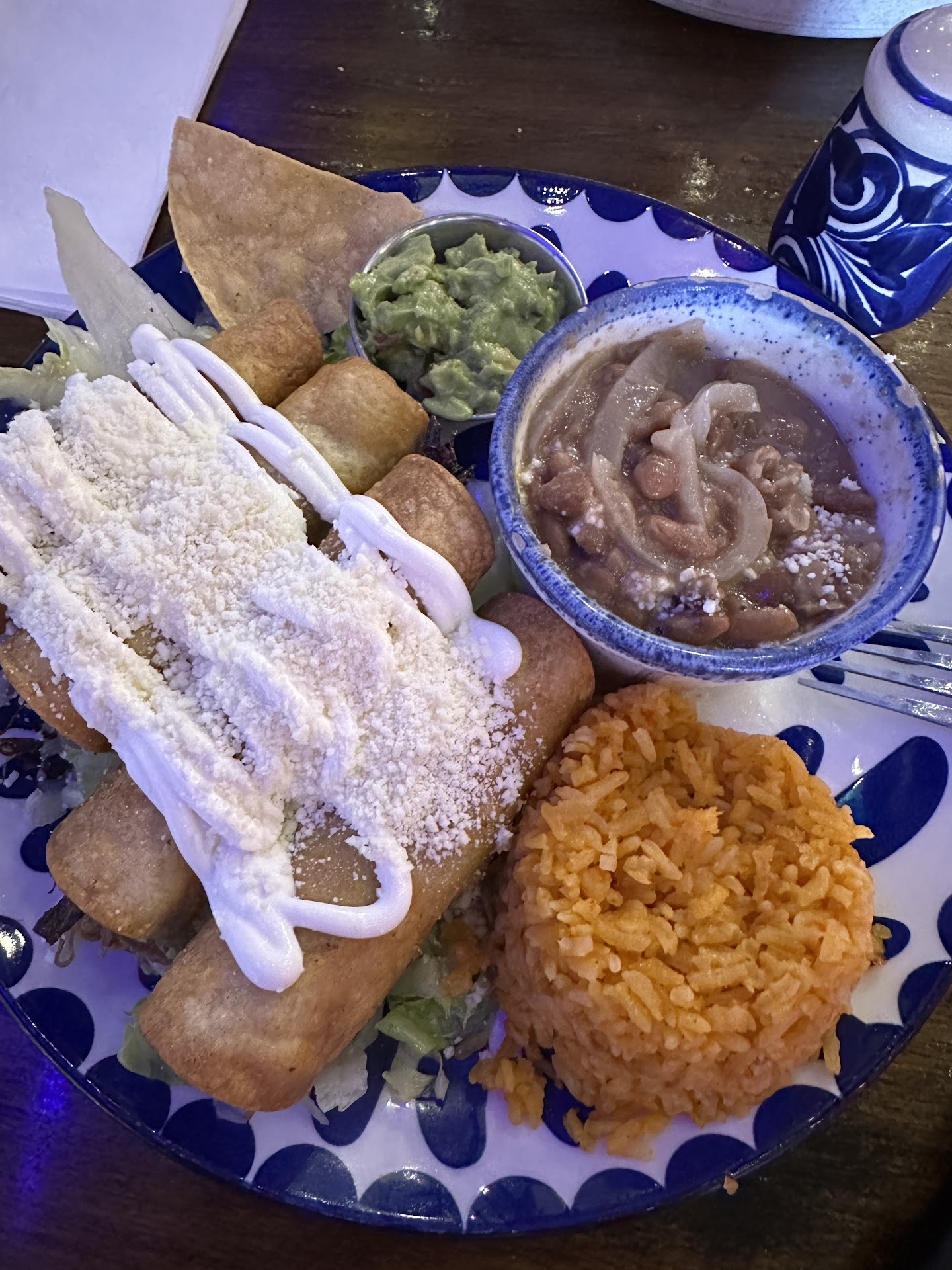 Ā Ā Ā Read moreVisiting town to the SF Giants play the Marlins later, and as our air bnb is just down the street, this was a close spot to grab a bite. I ordered the rolled taco plate (comes with rice, beans, and guacamole) and my husband ordered off of the Taco Tuesday menu (pollo, carnitas, chicharrón, nopal, calabacita, costra, and pastor tacos for $1.50). My tacos were decently sized with shredded steak inside. Some pieces looked like theyād been mixed back with larger portions after being put through a salamander or grilled, as some of the internal pieces were crispy burnt. Overall, they were pretty good - Iām not mad. I liked the rice best overall, though the beans vastly improved with some of their red salsa and a squeeze of lime. The sliced onions were a tasty touch, but I do think the beans could have been cooked a bit longer and there were some that were just noticeably underdone. Husband really enjoyed his pastor tacos (āno question better than the carnitas,ā) and considered eating a couple more while he waited for me to finish. Taco toppings are self-serve out of a small freezer (pickled red onion, white onions, radishes, etc). There are a few soda and beer options, though I donāt know if Iād recommend basing a visit on the online menu, as it seemed out of date.