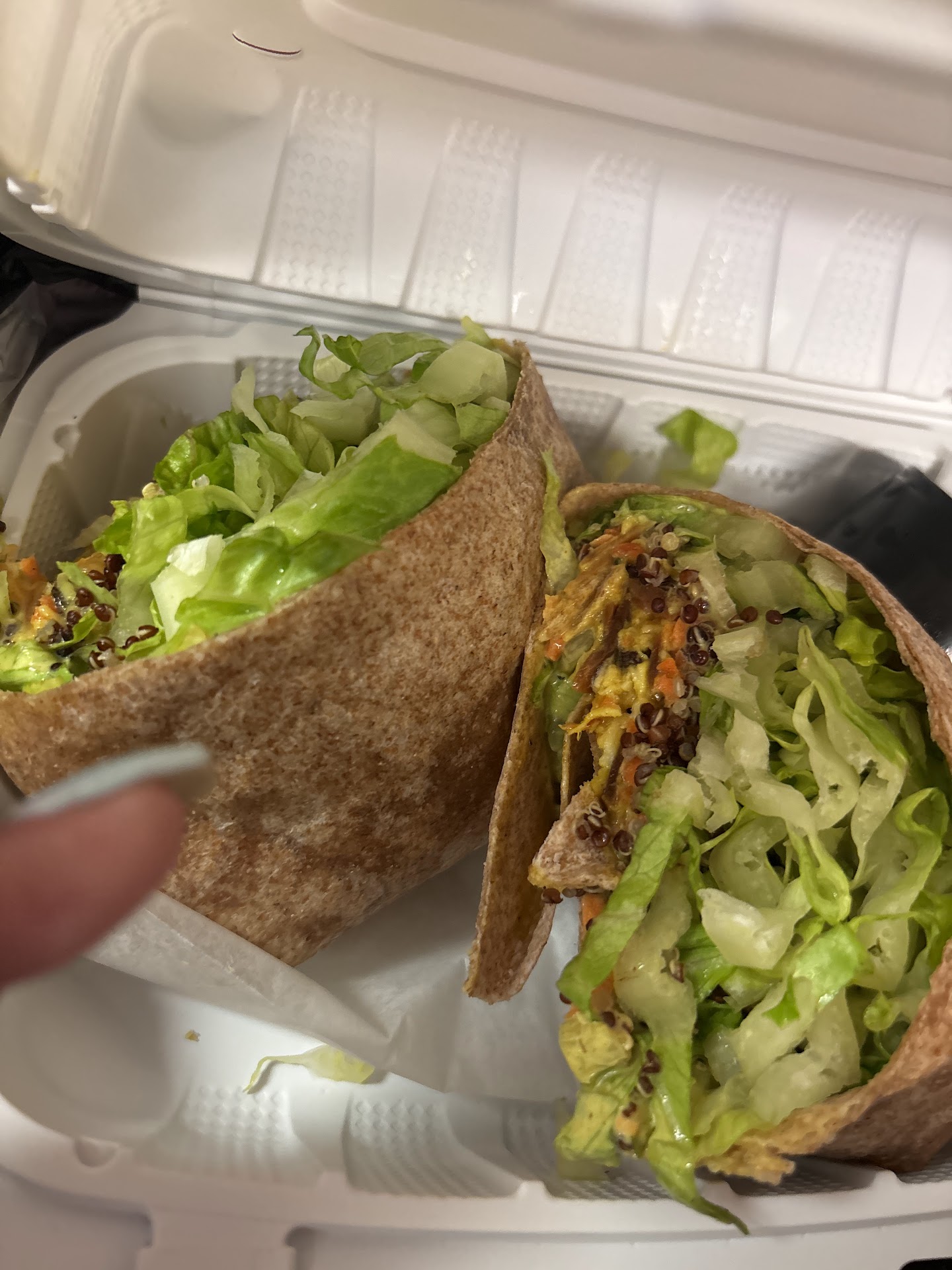Read moreI went here today for the first time at my son’s request. He’s vegan, so there are a lot of options for him here. We arrived around 2:30pm on a Sunday. There were 4 people ahead of us. There were no seats available. There were seats outside, but we were a party of five and all of the tables are 2-tops and can’t be moved around. We waited for almost an hour to be sat. I wasn’t too happy about that, but it wasn’t the staff’s fault. There was a table there with their to-go boxes since we arrived, and they just sat there talking for almost an hour after paying! The menu is great. Something for everyone! I have very picky eaters in my family. My husband got a meat empanada that was amazing! Then he had a gyro that was also really good! My son had the Mediterranean platter. It was huge and everything was delicious! We shared a plate of the Home potatoes. They were good. My daughter had a Cesar salad and ate every last bite. I had a portabella mushroom and goat cheese sandwich. It was amazing! I really didn’t expect much from the place, but they really make every single item very tasty! I wasn’t even that hungry, but I ate the entire sandwich. Even though it’s a far drive for me, I’ll definitely be back. It was worth...