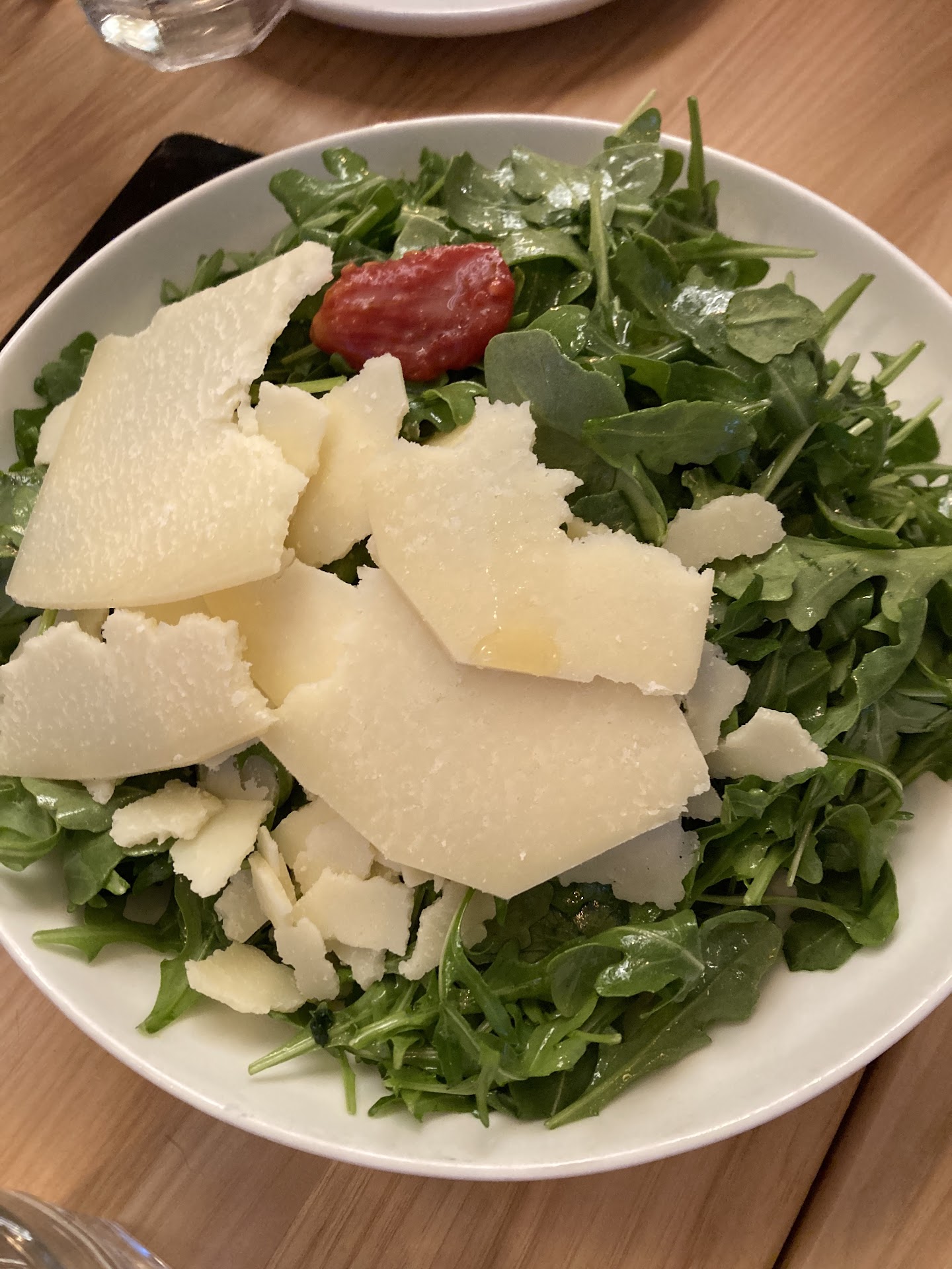 For appetizers we ordered the Burrata Verdi and the arugula salad. Both were very good. We were able to split them amongst the 5 of us and everyone got to have a nice share. The Burrata was exceptionally good and was all gone in minutes! The arugula salad had a little bit too much truffle sauce, but it was still good. We noticed that the other tables were being given focaccia bread, but our waitress had not brought any to our table. We asked her to bring some, but she mustāve forgotten and never brought it. We thought maybe they will bring it with the food, but after the food arrived, still no bread, so we asked another waitress if we could get some focaccia and she brought it to us. She was waiting on the table next to ours. The bread comes in a little brown bag with 4 slices in the bag. But there were 5 of us. So, the bread went quickly as it is VERY GOOD focaccia and went well with all of our sauces. Again, we ask our waitress for some focaccia and again she forgot. Hence, the 3 stars for service. I reminded her again, and she finally brought it. For our main entrees we ordered the beef lasagna, the āGolden Plateā, the porcini mushroom ravioli, the steak Milanese with a side of mashed potatoes, and the spaghetti allāamtriciana. The Golden Plate was large tortellini stuffed with ricotta cheese and served in a truffle sauce with porcini mushrooms.