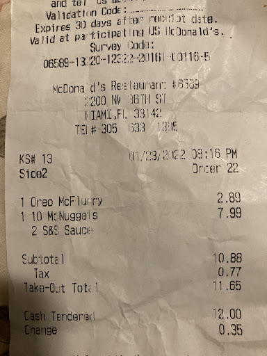 Read more11:00 Mobile orders through the app now charge your card when you make an order before they used to charge you once you pulled up to the speaker to tell them your code. They weren’t accepting any orders but uber and doordash, i understand that they were understaffed. I was told to pull up to the second window to speak to the manager after i had explained how i just wanted a refund. I pulled to the first window to be ignored by the two staff members, the only lady there aside from some cuban dude never went up to the window and was making loud remarks which where unnecessary considering the fact that she never came up to the window or told me anything in regards to my situation. her coworker didnt explain my situation to her i guess cause of language differences??? my concern wasnt getting my order i was just asking how or if it was possible for me to get a refund because online mobile order already processed the payment or if i could have the receipt at least to come back tomorrow for a refund since they were closed unless it was for uber/doordash. In the end i was told to pull up to the parking lot which i just ended up leaving because of the remarks and ignoring after the first time they told me to pull up to the first window after i asked if i could speak to the manager, didnt even care about the money anymore but I come here a lot and ive never had an issue with anything but the new employees need better...