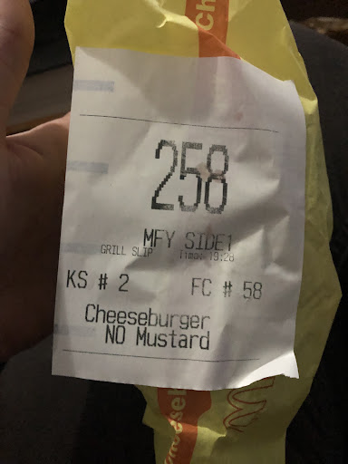Our food was good and still warm by the time we drove home. The line was short because it was way past dinner time. This is our one and only Mickey D's that we go to.