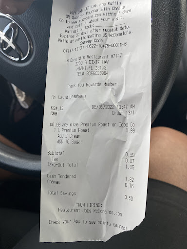 Read moreI’ve been going to this McDonald’s for as long as I can remember. For whatever weird and annoying reason, the McDonald’s on US1 never fails to be slower and less able to provide the best service than the McDonald’s on Coral Way. I went to the one on US1 today just because, and I couldn’t believe how much slower it STILL is than any other McDonald’s. It has nothing to do with the fact that they’re busy because the one on Coral Way & 32nd has had cars stacked on each other and they still move their cars at a timely rate. This McDonald’s has two speakers but only one of them has worked for the past 6 or 7 years. It’s laughable tbh. McDonald’s on Coral Way will forever get my business opposed to this one. And this does come up in conversation with the average person, and I will let them know the one on Coral Way is always much better. Thanks. The rest of this review is updated and happened after I finished my visit at the McDonald’s. As always they made me wait 10 minutes in the drive-through as cars continue to stack up on each other just for them to tell me that they didn’t even have soda. They take 10 minutes per car just for them to tell you that they don’t have what you came there for. By far the worst McDonald’s in Miami and likely the worst McDonald’s...