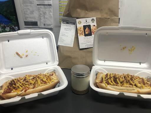 I got this via Uber Eats so I can’t comment on the atmosphere but man what a scam of a burger joint this is. The picture you’re looking at is what the $20 Hangover Burger really looks like. My other friends who also ordered just ate it so no pics of those either but the burgers do not come as advertised. Also look at the fries closely, they’re three different types of super market fries. What kind of reject discount style is this? I wanted to give these guys a call because they also forgot all four aioli sauces (that’s $6+) for the burgers and to give them a chance to fix this. As it turns out, the numbers on Uber, Google, AND their website do not work. Sketchy. I would caution any body to eat here. Anybody giving this place more than two stars are probably paid reviews or bots. Look how consistent the negative reviews are. Don’t believe me? Try calling them! Oh wait you can’t because...
