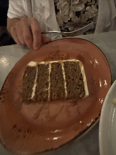 The final slap in the face came with dessert. A carrot cake, the saddest, tiniest sliver of frozen store bought carrot cake Iâve ever been served, lacking any taste, not containing any walnuts. Another piece of cardboard masquerading as dessert. Actually, I should say that Iâve had grocery store carrot cake 10x better.