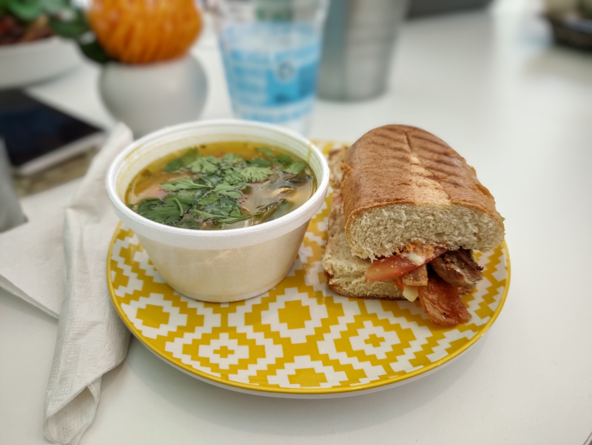 Read moreI was very excited to visit Mina Bistro after reading their description about the family atmosphere and dishes made with "real ingredients and love" to make you feel at home. Well, their family is different than mine. No one burned the Mac and cheese so bad we had to call the fire department. Nobody broke wind loudly and blamed the dog. No 5-year olds wiped Nutella all over the furniture. But all that aside, the avocado chicken panini was delicious and I loved the Caribbean soup. Mina Bistro gets a big thumbs up; will come back again. Might even bring the...