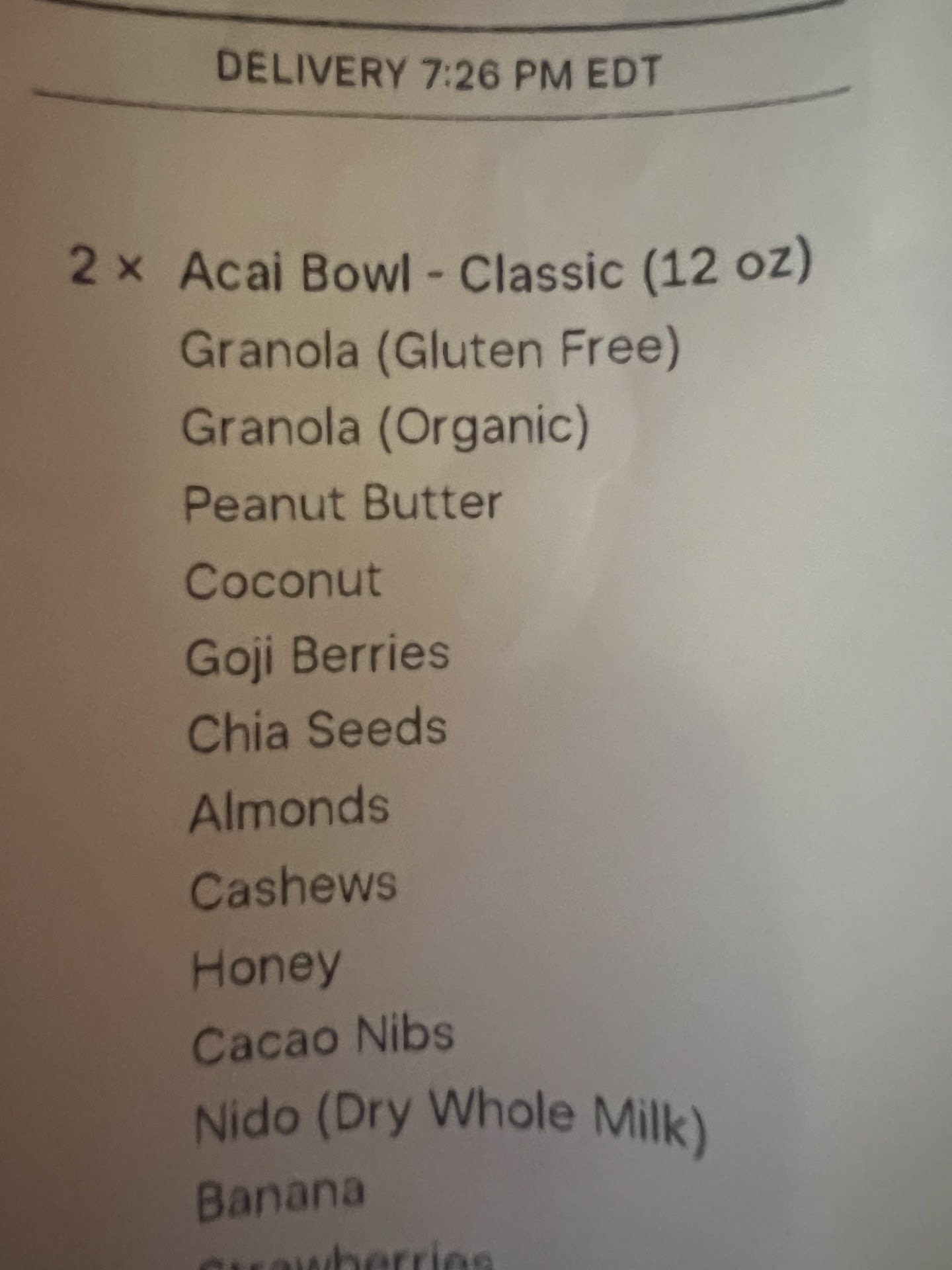 Ā Ā Ā Read moreWe are traveling to Miami and ordered two acai bowls and received one. We are two people. Uber says they will only refund us one. We don't want to eat. Who wants to eat with two people and then one comes and one eats and one starves? I told Uber to take it back because I didn't even touch the food. They made a mistake. If two people are supposed to eat it, you either get two or you don't. Why should I have to spend money, feel bad, waste time, and not be able to eat it? I know I may be too harsh on one ordering mistake, but this is the worst day ever. No one tries to make it up to me. This is the best way...