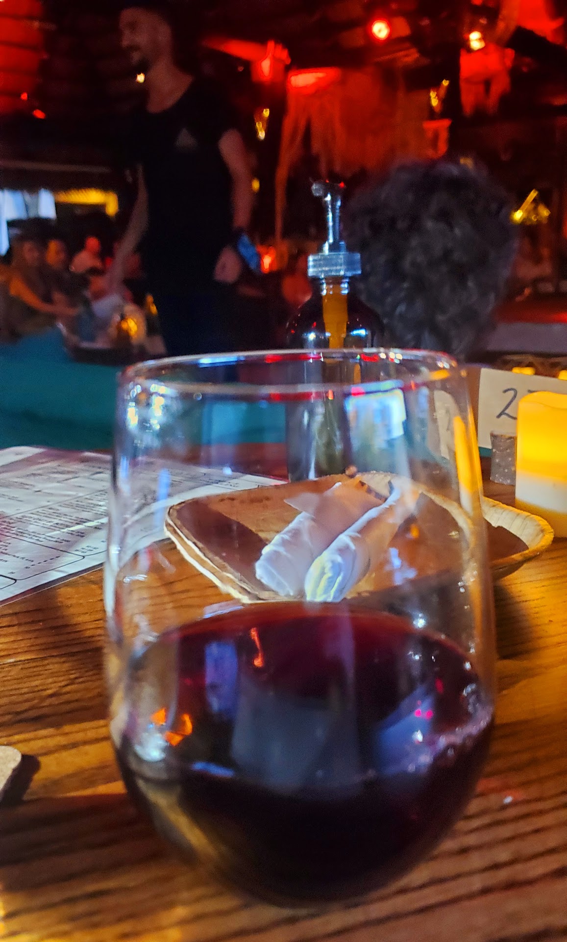 The food comes from the various venues around the bar and everything was just as eclectic as the surroundings. if you are not into exotic food then this is probably not your best choice for dinner but you can certainly enjoy the drinks from the bar and catch the show. All of the plates, cutlery, straws, etc we're all sustainable and or recyclable.