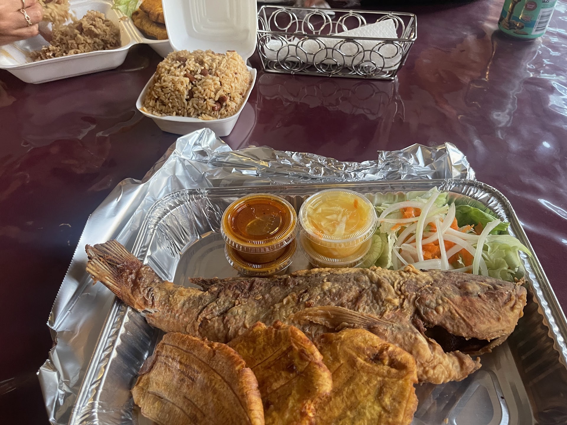 Read moreFood was mediocre but not too bad. The biggest regret of choosing this restaurant was the incredibly rude service. I'm not Haitian but often enjoy the authentic Haitian food we have in Orlando. If this is what the Miami experience is for Haitian cuisine, I'll go anywhere but here. As someone who does not speak Creole yet, I understand that when going to a small restaurant like this I may or may not encounter fluent English speakers. That being said, the woman taking my order didn't let two English words out of my mouth "chicken dinner" before pretending to not understand me. She only did this because I was with a friend who spoke Creole. If you do not speak English, I would recommend not having a menu on your wall in English. Put the menu in Creole so I know what to expect. Google translate would work fine in a situation if I were by myself. The woman who took our order then proceeded to give us an unwarranted attitude throughout the rest of the experience. When we requested an additional side of tostones/fried plantains, first she pretended that she couldn't do it. Then she relented and gave us our request. For a restaurant that requires everyone to pay in cash, there is no excuse for this. As long as I am paying the price for it, they should be able to reasonably accommodate a simple request. Other Haitian restaurants (that do honest business - not cash only) allow side items to be ordered, so there's no reason why Piman Bouk should not be able to unless they were out of the food item. My hopes were high for this restaurant but after this experience it is not a place I would return to...