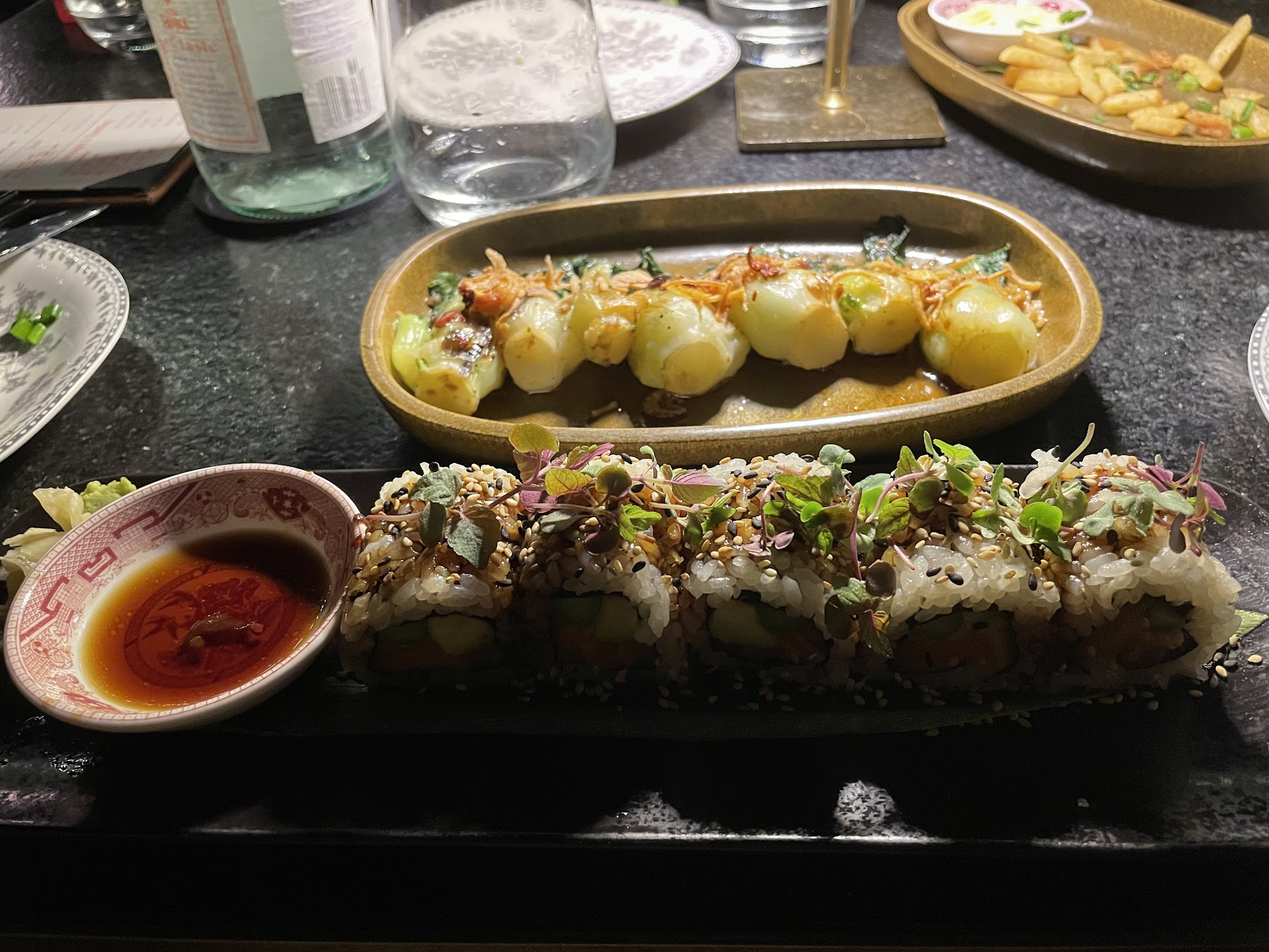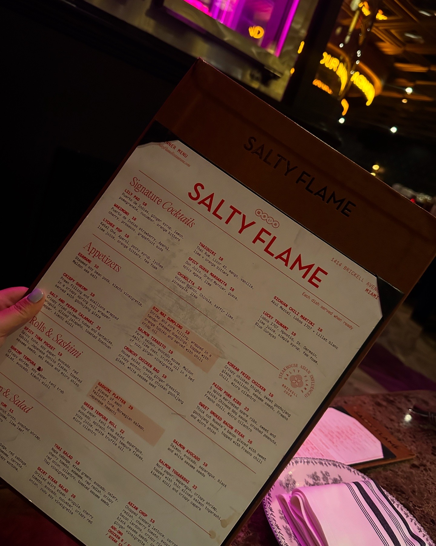 When we were seated at our table the service was on point from the beginning to the end of the night. There was even a moment where we ordered another round of drinks with our waitress and minutes later, they showed up while she was busy answering our questions and taking care of us. This blew my mind! And it wasn't like the Salty Flame was empty either! They were definitely busy and working hard taking care of all the tables.