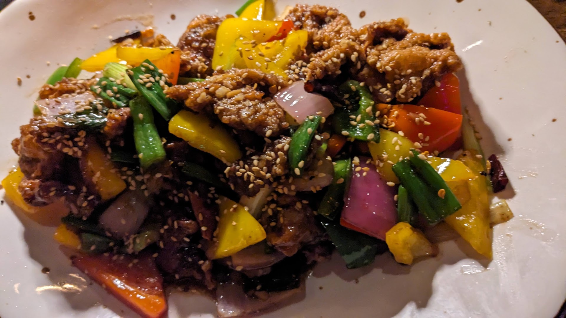As for the food and any recommendations? The edamame was excellent, and the salt and pepper calamari were delicious too. The flavors, seasoning, and kimchi spice thrown into the mix gives it a really nice touch. The Korean Fried Chicken was also really tasty and sweet with the sauce it is coated in. Finally, I had the flat iron steak as my entree which comes served with veggies which I felt like really made the Asian cuisine stand out and it was my favorite dish of the night. The balance of sweet and salty is perfect! Think of it as a lomo saltado, if you're into that, then you're going to love this dish! Something important to note is the sides are not included and have to be ordered separately. If you order the steak though, veggies came with it so that's a pretty sweet deal for me!