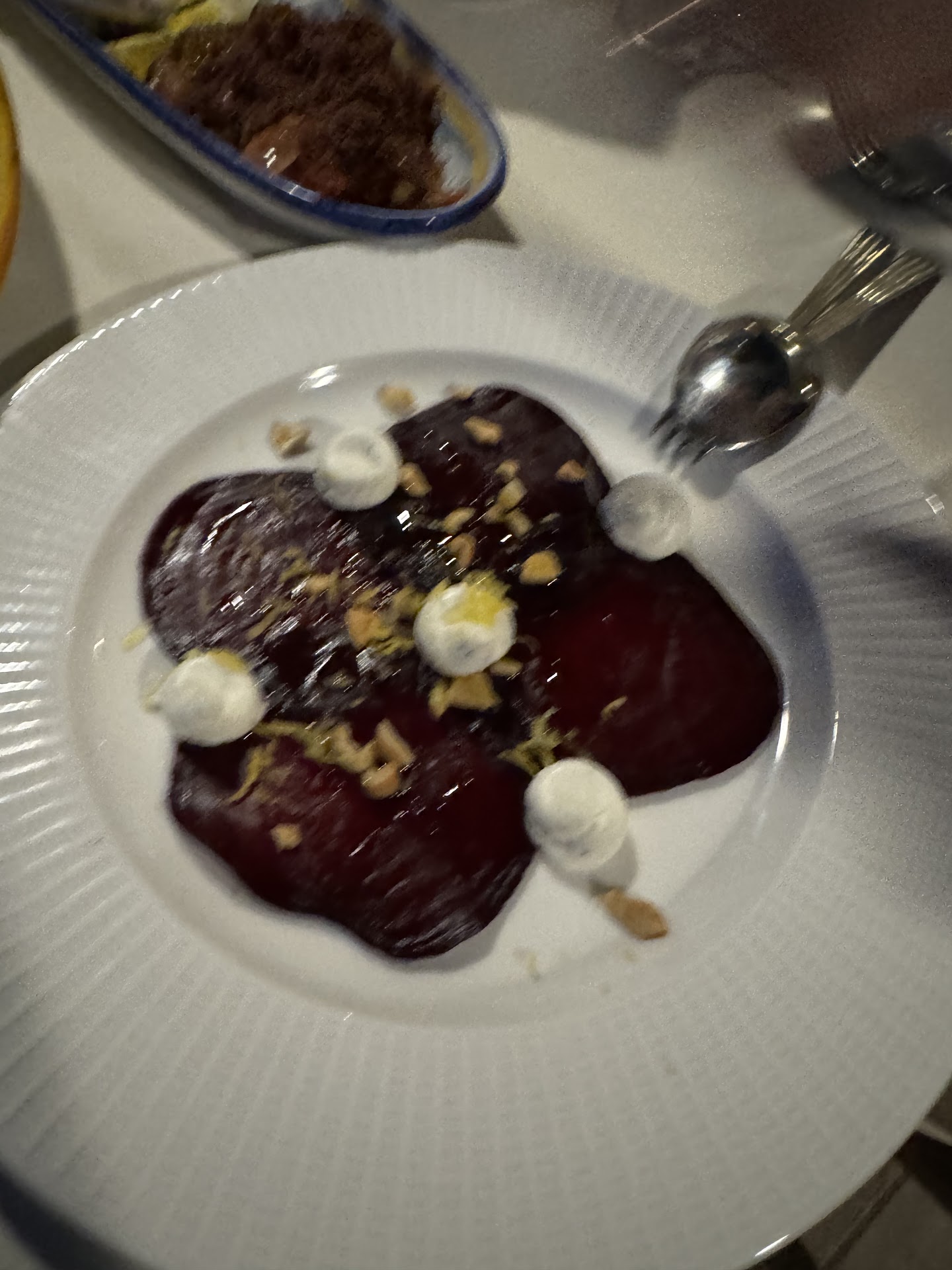Caponata was nice, but nothing special, Russian salad (cubed frozen vegetables with mayo and hard boiled eggs) we didn’t touch, and tomato’s with stale bread was nothing to write home about. The Vitello tonnato and beet dish with actually pretty nice, but it was one bite each.