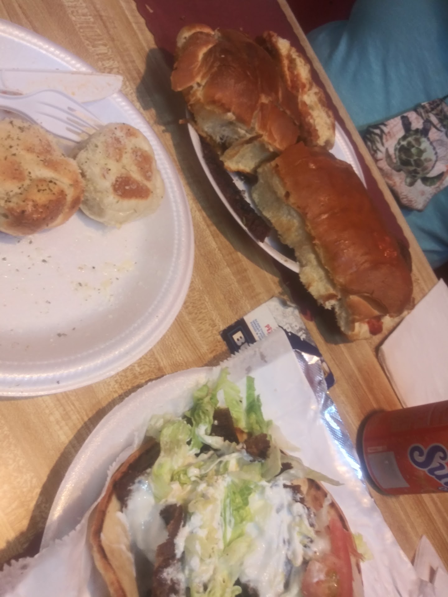 In the picture you'll see I unwrapped the gyro and was eating with a fork. It did come wrapped in foil to be eaten out...