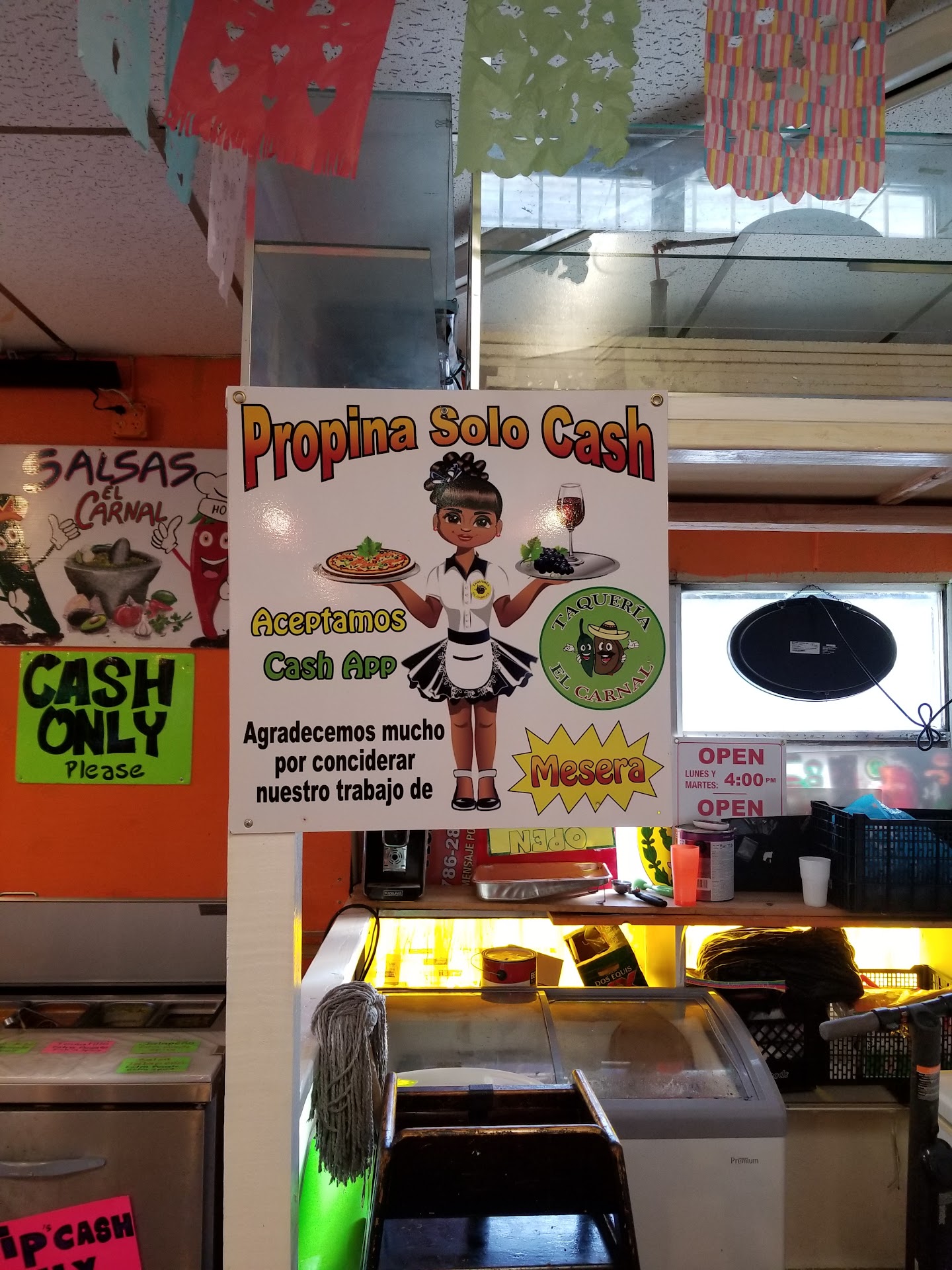 Read moreThe food was very good. I ordered a variety of different Tacos to try out. I will speak on them as I felt they tasted. The tacos al pastor or my favorite by far, they were amazingly flavored and that sweet little bit of Pineapple made all the difference in this flavor. Next I'll speak on the carne asada tacos, they were not too bad but they were also not amazing. They seemed to be a little bit dry as far as the meat goes when I expected more of a juicy flavored meat. I also tried the fish taco and it was very good, they included a sliced avocado which made the creamy flavor that you're used to expecting from a fish taco pop all that much more. The chorizo tacos were also very good, I have had chorizo tacos and other restaurants and they are always extra greasy. The chorizo tacos here were very well cooked not overly greasy and had a nice spicy flavor. The chicken taco was very good as well and not a bad alternative for people that don't eat red meat. The last and final Taco was outside of what I would normally order, so I personally did not like it just because of the way that the texture was. The chicharron Taco is the one that I am referring to. And for the last two items of my review the horchata was amazing, it was very well made and didn't taste overly powdered like some other restaurants serve it. The guacamole style salsa that they gave me was delicious. The only downside of this restaurant is the fact that they are a cash-only establishment and they have very limited parking. Many people don't carry cash in this day and age, they do offer an ATM machine with a $2 fee, I would recommend you stop by your bank to avoid the $2 fee plus whatever fee your bank would normally charge. And if you have any questions regarding the cash app accepted sign that I took a picture of, that is if you wish to tip the server with cash app they would accept it. The cash up is not accepted as payment at...