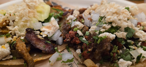 Anyhow I came in here after office hours on a Thursday, so it was kind of quiet. The staff was friendly and the menu looked good. I ordered the Al Pastor tacos and the Campechano (confit rose meat and sausage blend), and ordered them with option of crumbled Chicharron (worth it for the $0.50 upcharge per taco). But honestly I wish they also offered a side of freshly made Chicharron's too, rather then just the crumbled. Aside from that that the Al Pastor was yummy and the Campechano, while slightly gamey, had a good flavor and was tender.