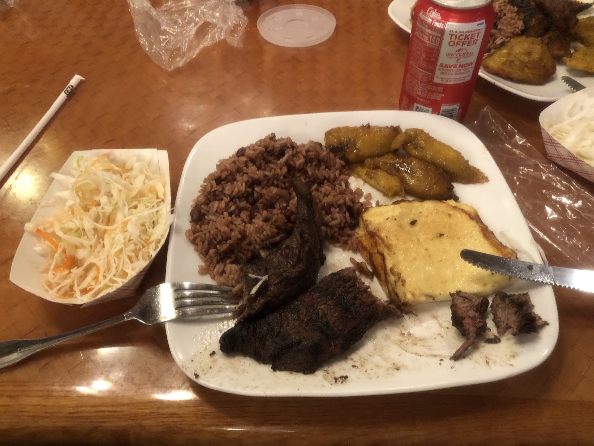 So here's the trick . You have to ask for the pinto de gallo ( red rice) on the top. The very nice and polite ladys will give you scrapes and grains that'll break your teeth from the bottom of the pan. The rice on top in the center is where your moneys worth.