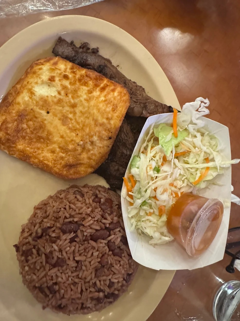 The food that matters is behind the nice ladies . The carne asada (short rib ), pinto gallo arroz (red rice and beans ), platanos (plantains) & queso frito ( fried cheese) . I cant stress this enough unless your into the central American gastronomy DO NOT order any of the ready to serve food behind the glass. Trust me . It gross.