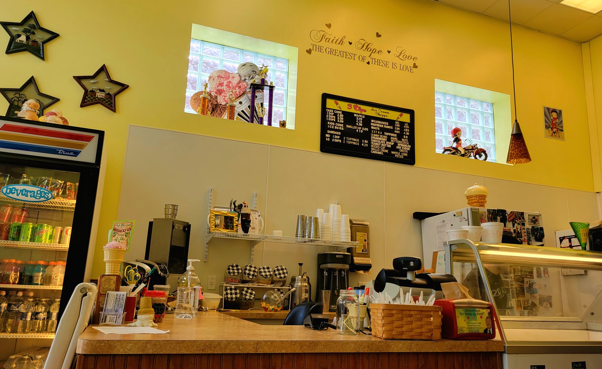 Read moreCute old fashioned ice cream parlor. They have tasty ice cream I think it's the same brand from UDF going by the flavors but not 100% sure. Please be sure to stock up on Reece peanut butter sauce and marshmallow sauce, sometimes you run out and those are my favorite. My children love the paintball blast ice cream flavor and of course superman. I have them whip me up a reece pieces sundae which is my own creation a throw back to a sundae...