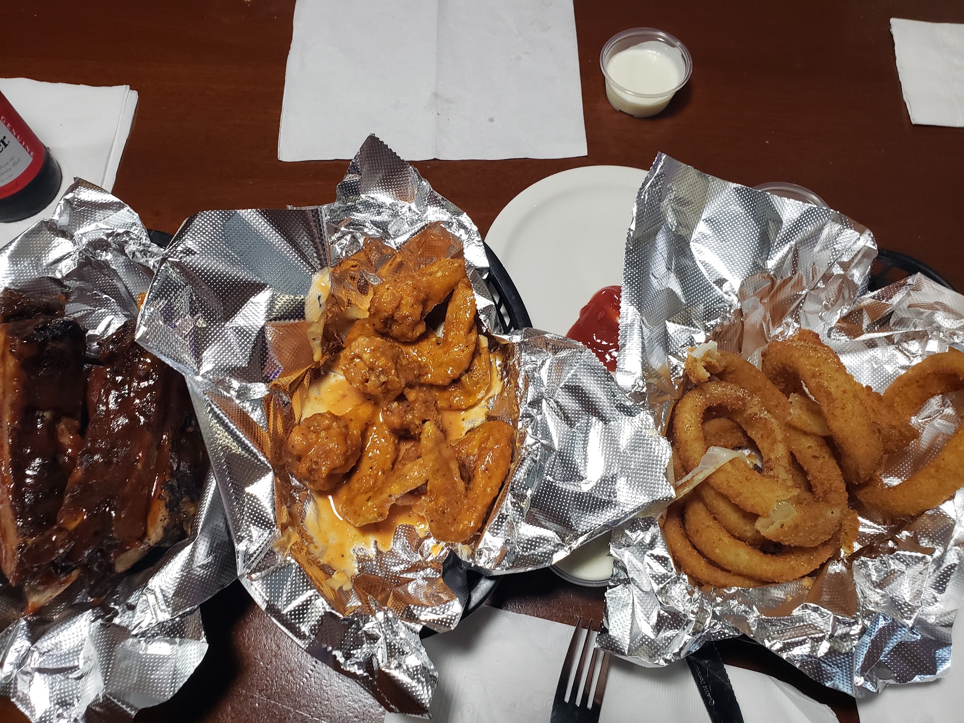Read moreThis restaurant sounded like a place my husband and I wanted to try for some good BBQ and soul food, When we pulled into their parking lot there were no cars on a Friday at 4:30p. We thought they were closed. When we walked in there were 2 waitresses sitting at the bar. Neither one looked at us and continued talking. And no one at the door to greet you. Someone from the back calls out to sit anywhere we wanted. We placed our order and it took a long time considering we were the only ones there. The brisket was like shoe leather, smoked wings were smoked dry just short of jerky, and the ribs tasted boiled and then lathered in sauce. The Sides servings were so small. Red beans and rice had very little beans or rice mostly sauce that only tasted like Red Hot Sauce. The potato salad was terrible. Looked like they used those frozen cube potatoes from the grocery store and then drowned it with mayo. The macaroni and cheese was okay. The restaurant was dirty. We had our waitress clean our table before she brought out our food. The waitresses clothes were dirty. And THE last straw was when a waitress was flossing her teeth at the bar!! This the worst restaurant we have...