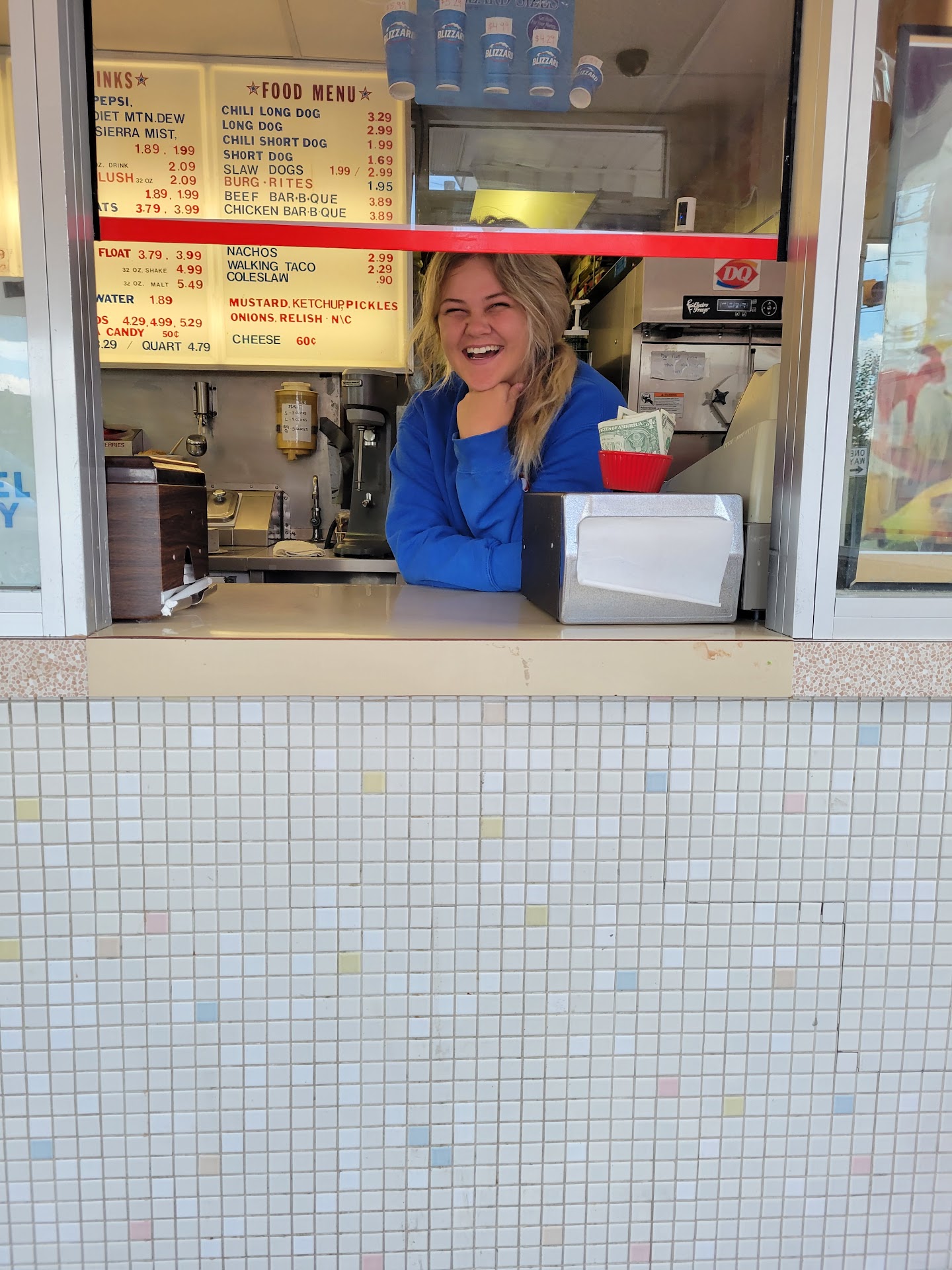 Ā Ā Ā Read moreI seen this dairy queen and got really excited because we don't have a dairy queen here where I live ..well when I walked in I could not understand where everyone is at it was empty and I know why we went to order food the young girl told us they didint make burgers only deep fried or hot dogs so we ordered two chilie dogs and I wish I had never got the dogs they was so old tasting you could tell they had been on a roller grill way to long they was horrible...and the red only one place to sit at the picnic table out side only one I seen the place look old and ran down I understand it's kinda out in the country but really it's not there's a nice town right next to the place I do not understand why they don't update this place it's a hot mess the red a machine looking refrigerator that was sitting where you order it was empty this could really be a nice family place if they would update it looks dirty and ran down very old nothing has been updated here since it opened. Please help this...