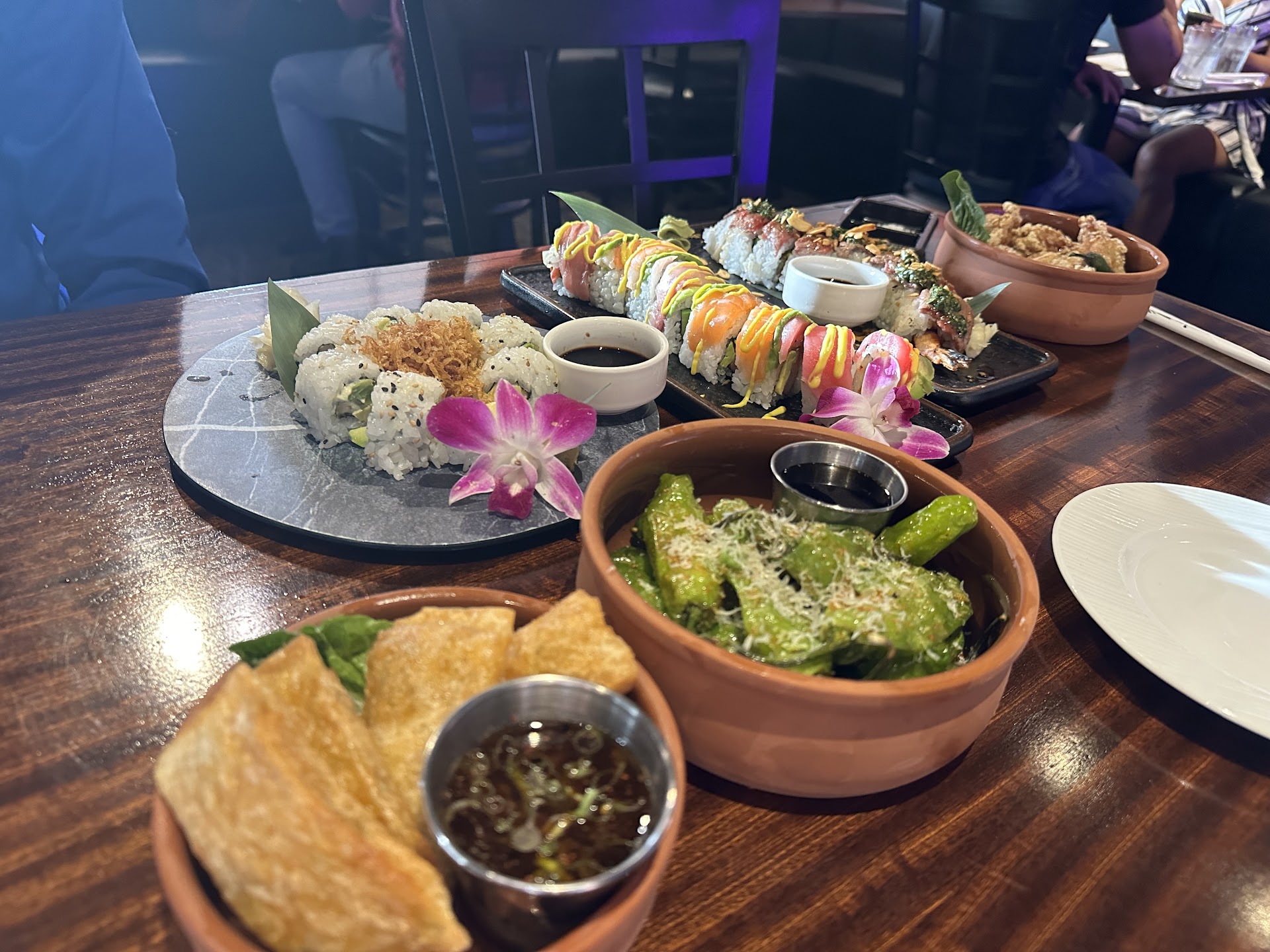 Everything was so good. The Iberian roll melted in your mouth. The Avonut was a perfect blend of salty peanut and creamy avocado. Japanese chicken was perfectly moist with amazing sauces. Kimchi dumplings were crispy, slightly spicy, and a real delight with the sauce. The vegetarian Usagi roll was so well balanced with the crispy rice pearls and chimichurri.