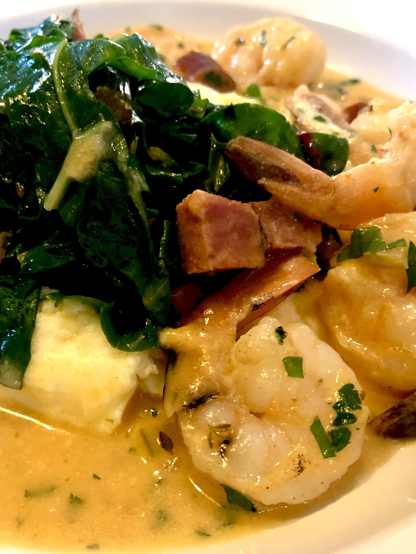 The shrimp and grits was amazing! Shrimp, andouille, creamy white cheddar polenta and garlic rainbow chard make for an amazing dining experience!